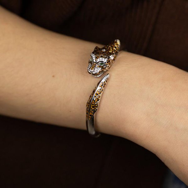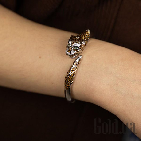 Женский серебряный браслет с куб. циркониями и эмалью