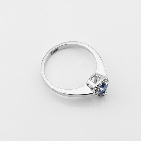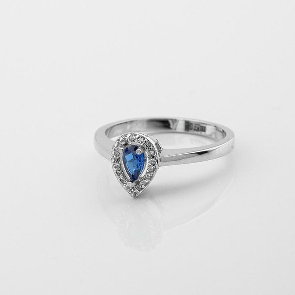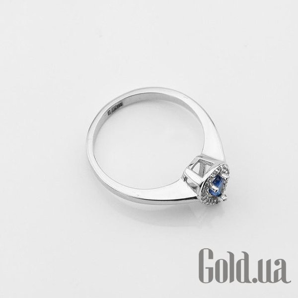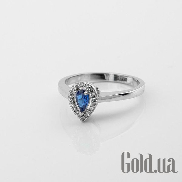 Женское золотое кольцо с куб. циркониями и синт. сапфиром