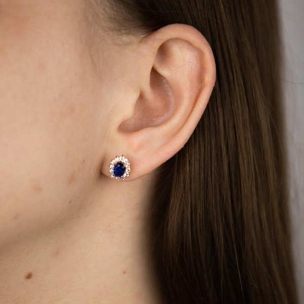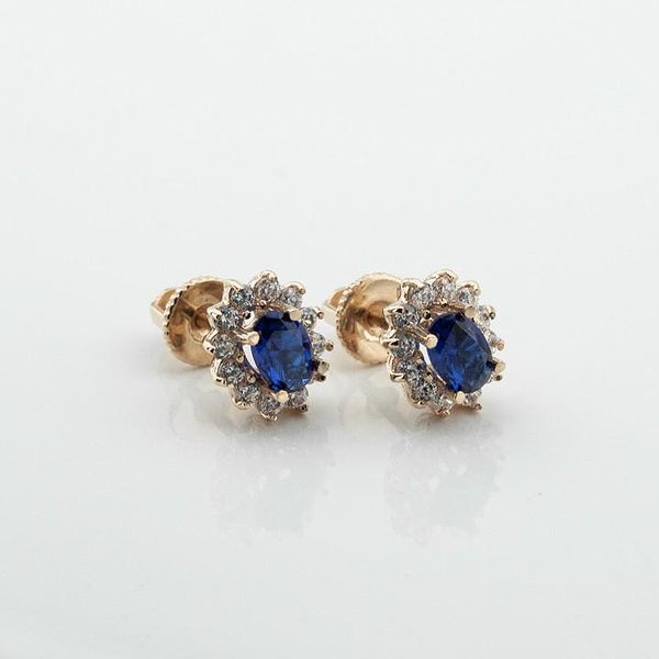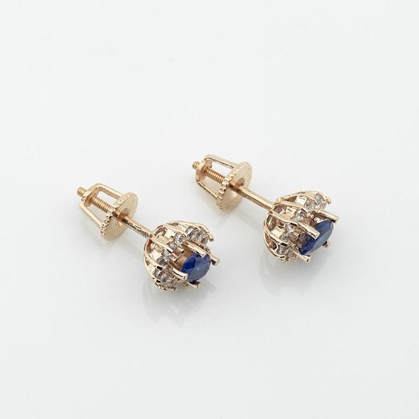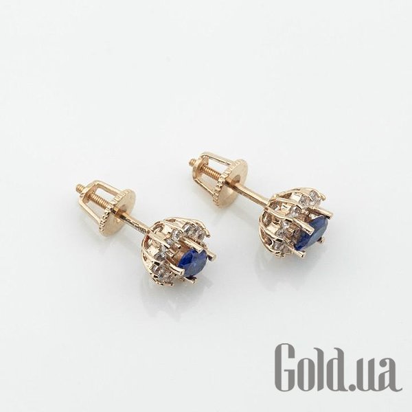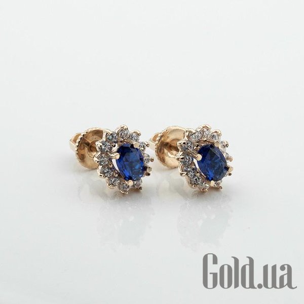 Золотые серьги с куб. циркониями и синт. сапфирами