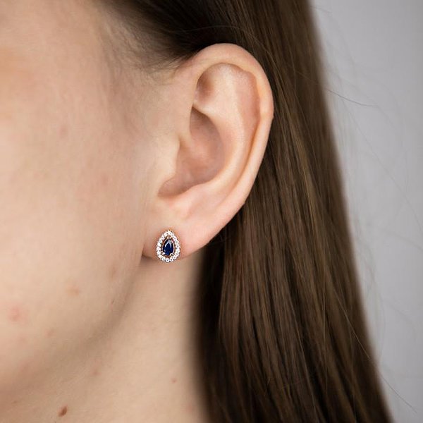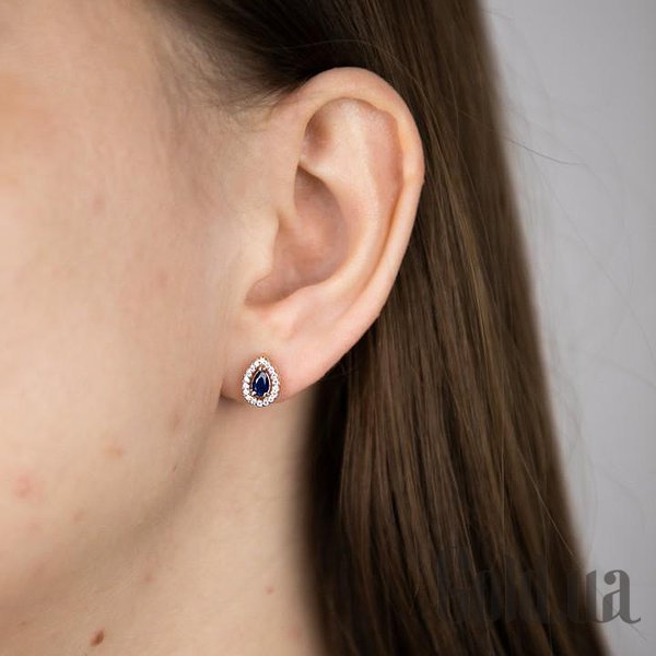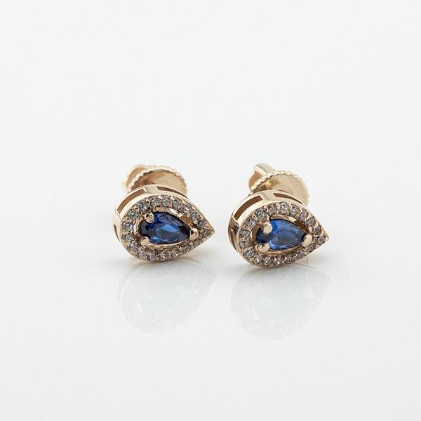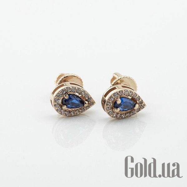 Золотые серьги с куб. циркониями и синт. сапфирами
