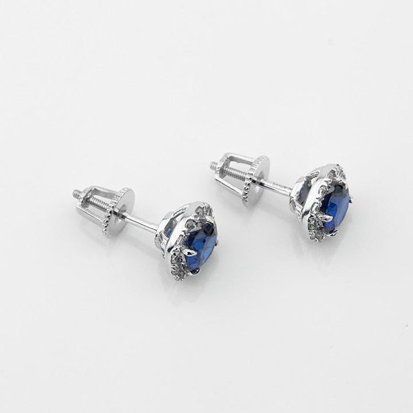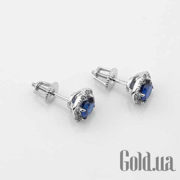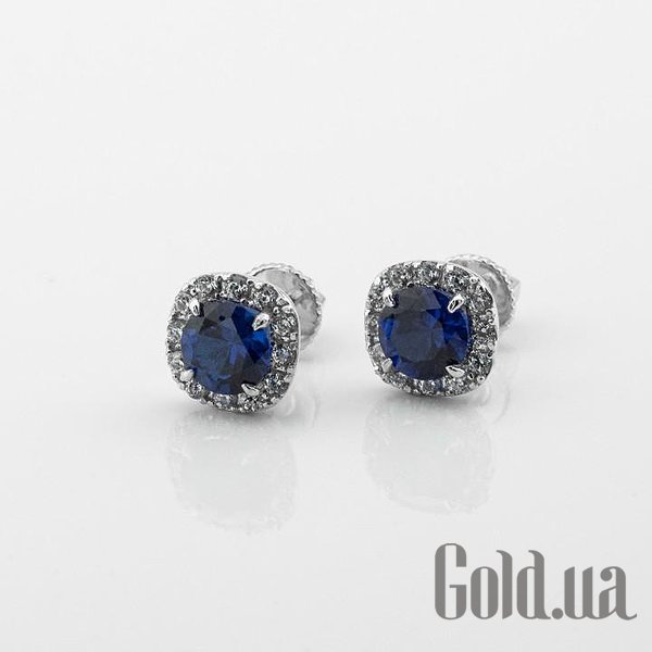 Золотые серьги с куб. циркониями и синт. сапфирами