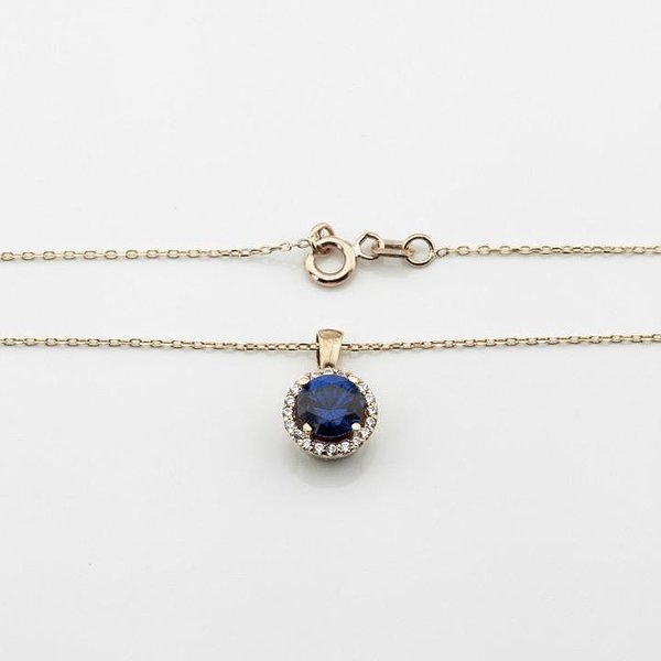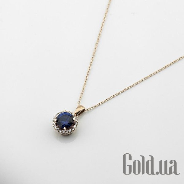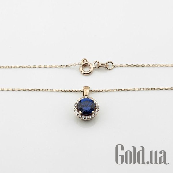Золотой кулон с цепочкой с куб. циркониями и синт. сапфиром