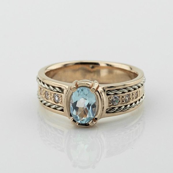 Женское золотое кольцо с куб. циркониями и топазами