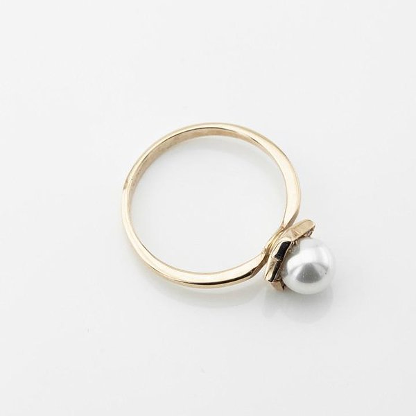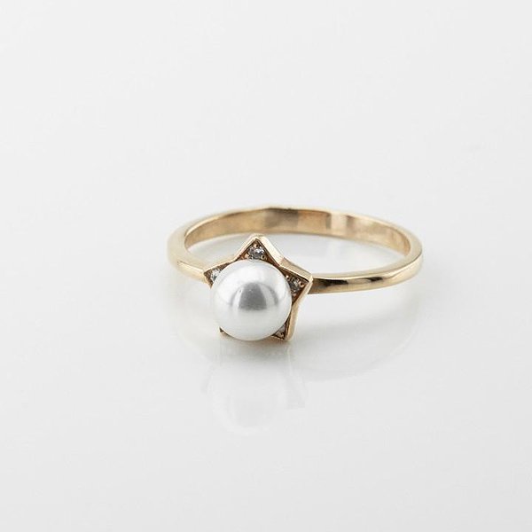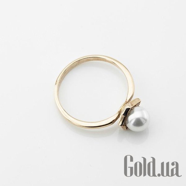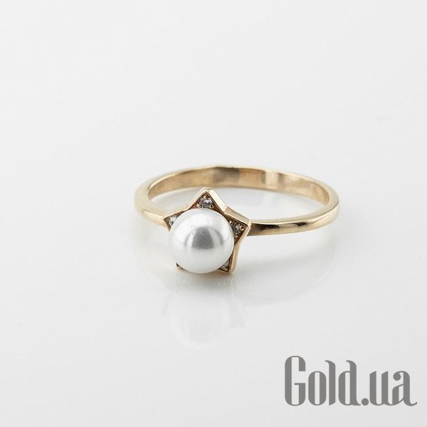 Женское золотое кольцо с куб. циркониями и искусств. жемчугом