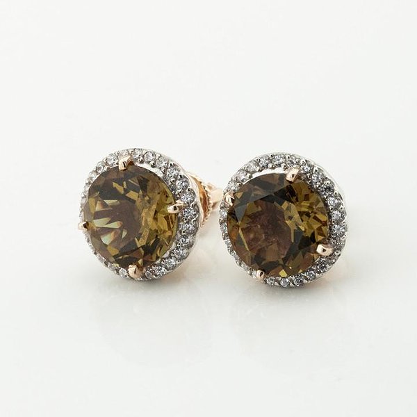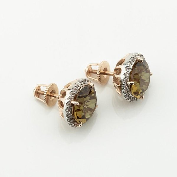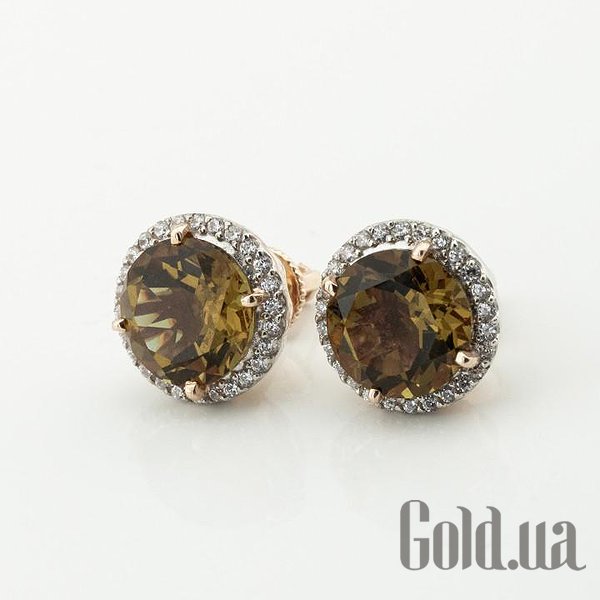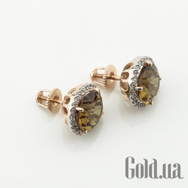 Золотые серьги с куб. циркониями и султанитами