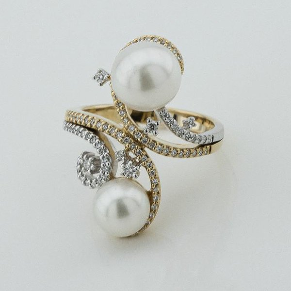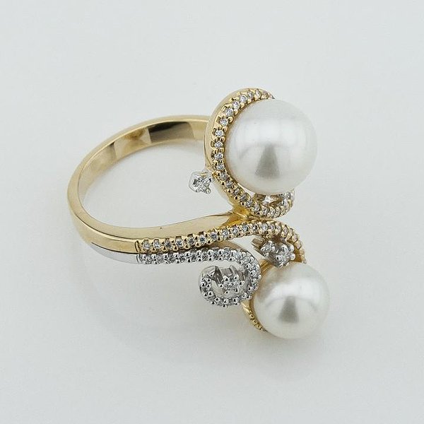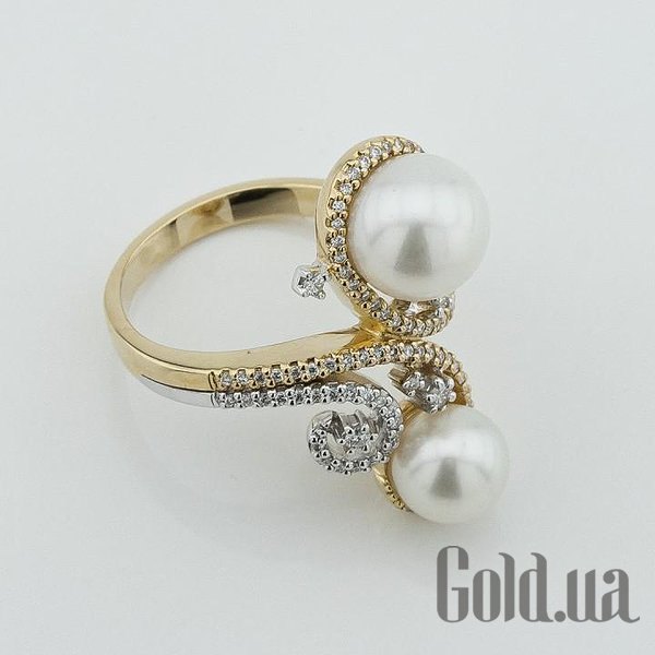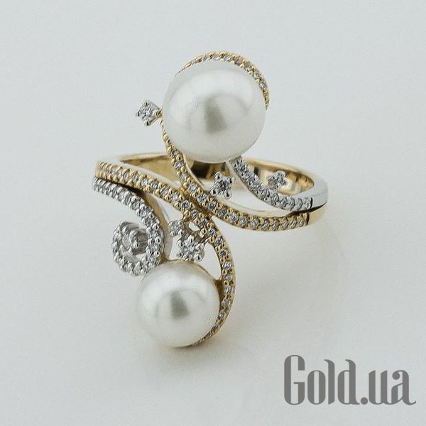 Женское золотое кольцо с бриллиантами и культив. жемчугом