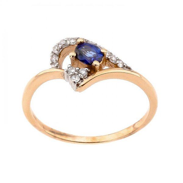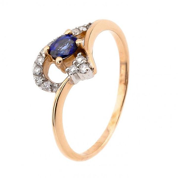 Женское золотое кольцо с бриллиантами и сапфиром