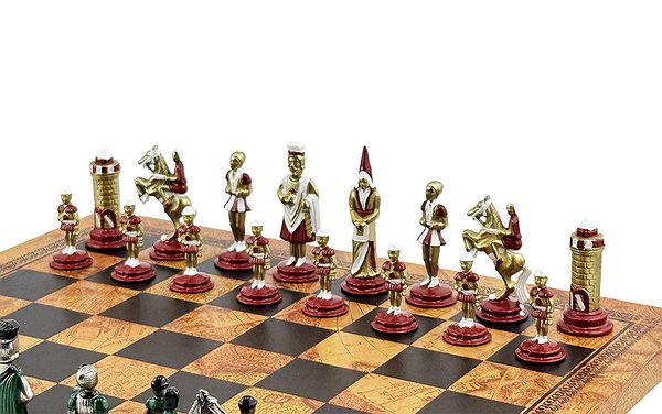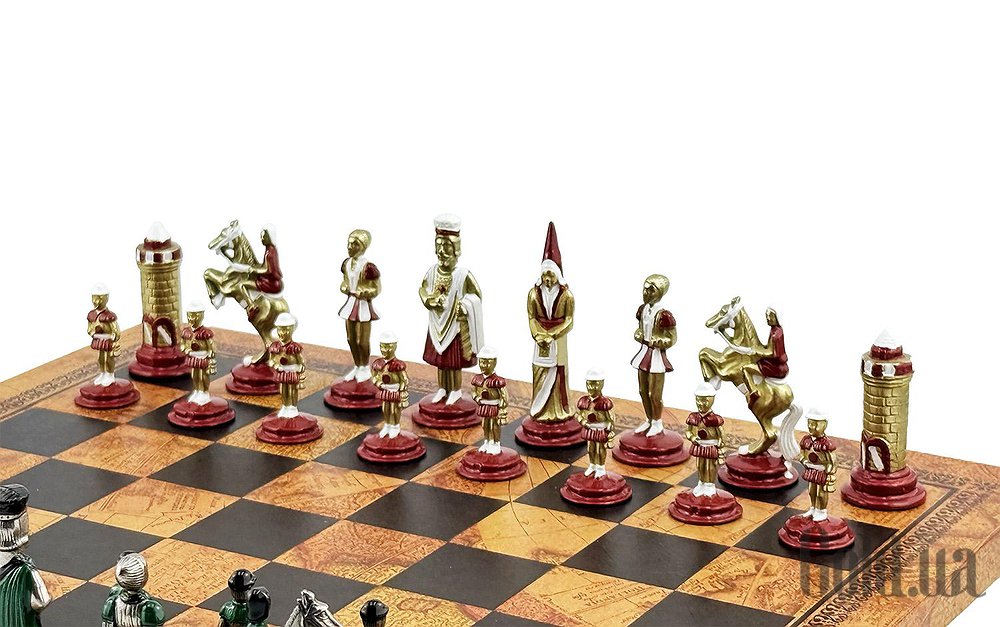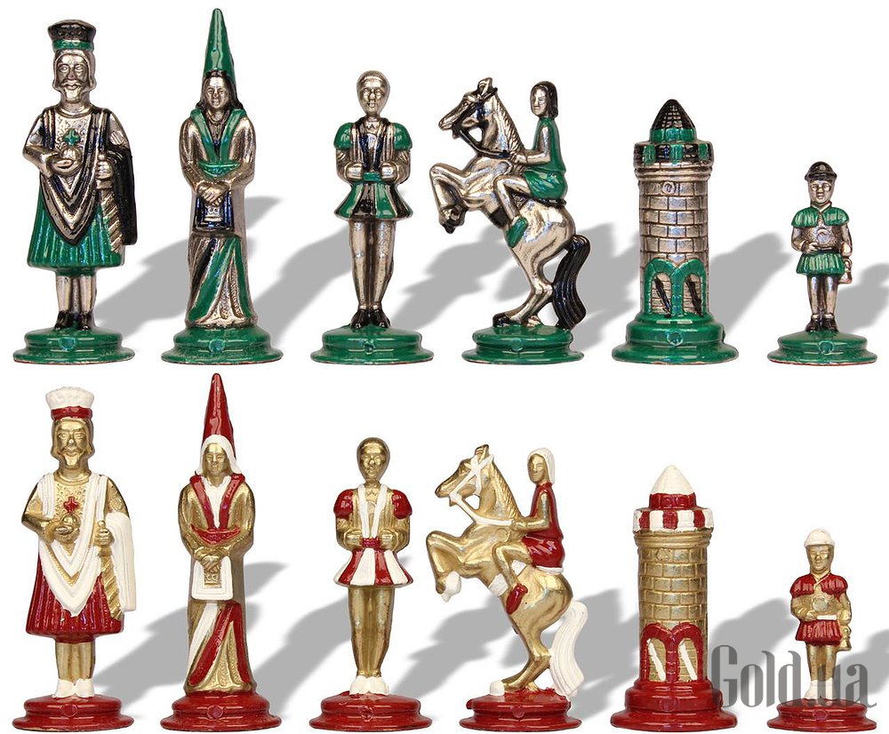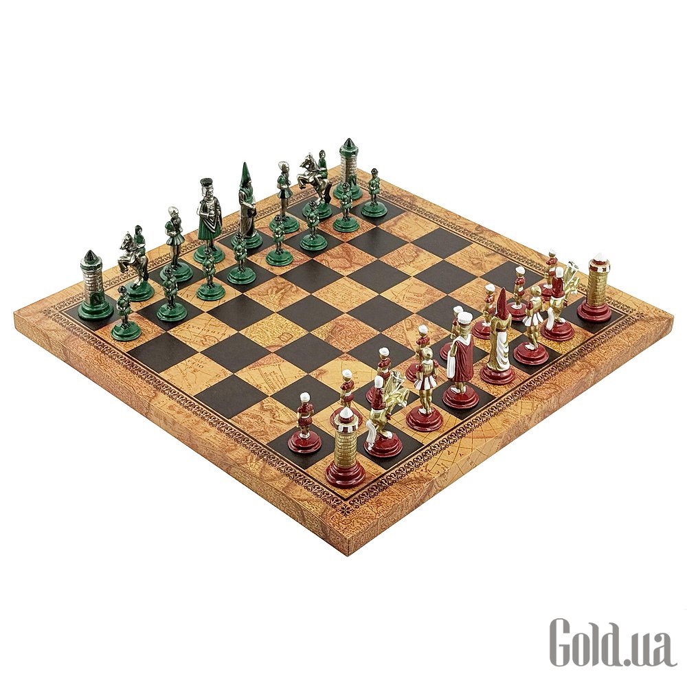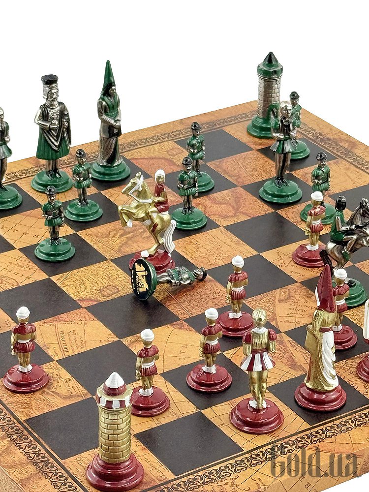 Коллекционный шахматный набор Italfama – фигуры Medioevale (металл, король 6,7 см) + доска из экокожи 33×33 см.