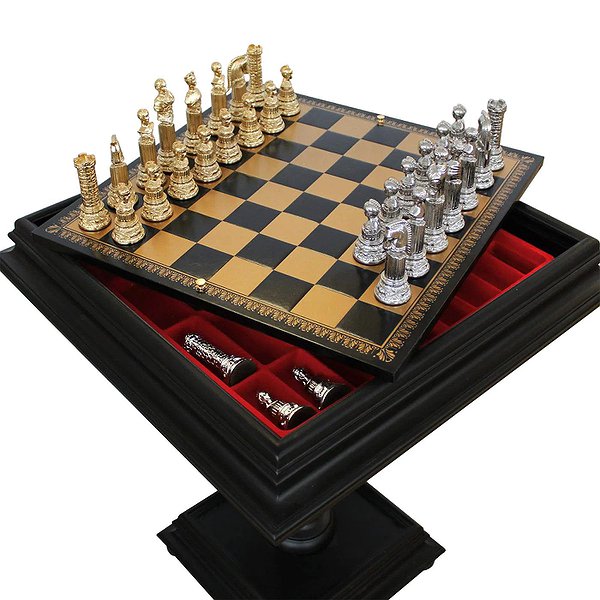 Роскошный шахматный набор Italfama: ROMAN EMPEROR (12 см) + шахматный стол 55×55 см