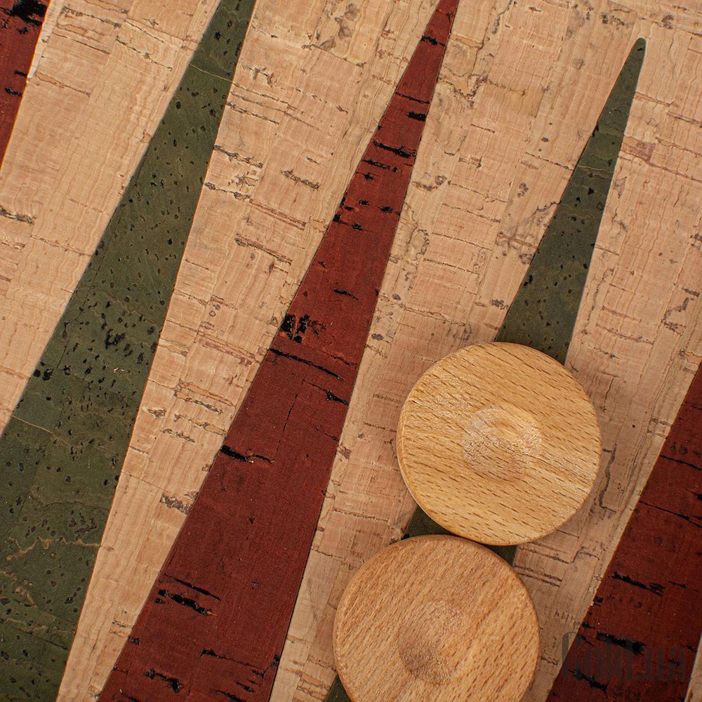Игровое поле: Темно-коричневая пробка с натуральными, серыми, красными и зелёными вставками.