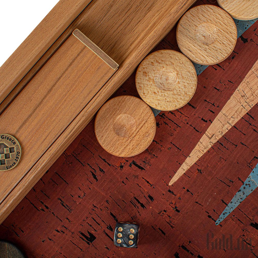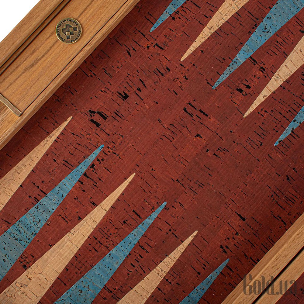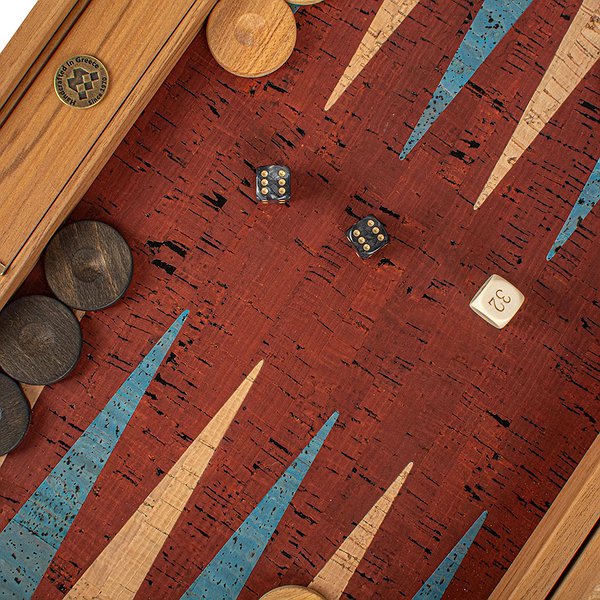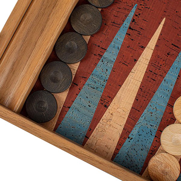 Игровое поле: Тёмно-красная пробка с бирюзовыми и натуральными вставками.