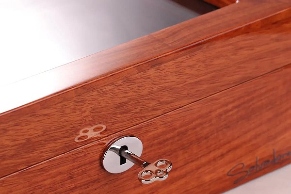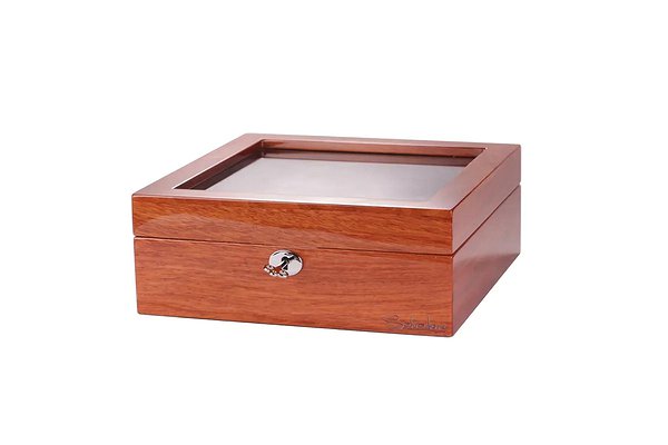 Материал корпуса — натуральное дерево Bubinga с глянцевым лаком, закаленное стекло.