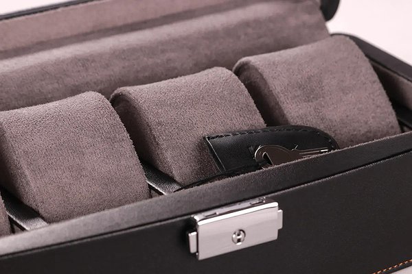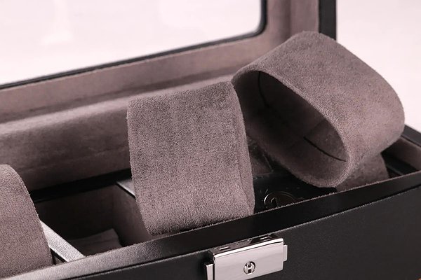 Внутренняя отделка шкатулки выполнена из серой замши.