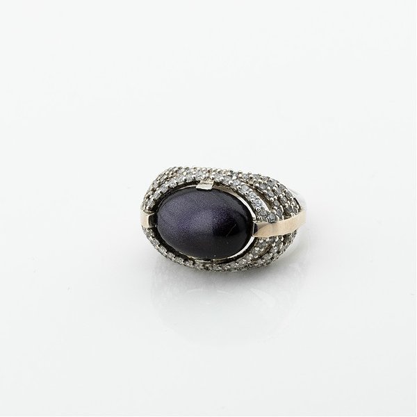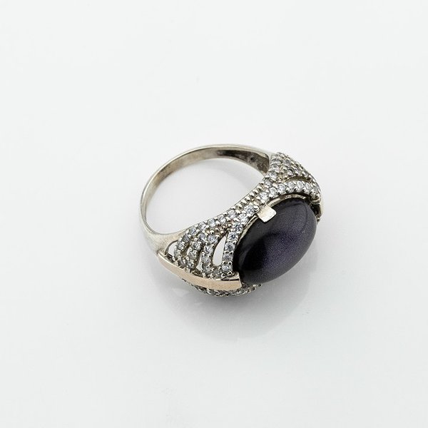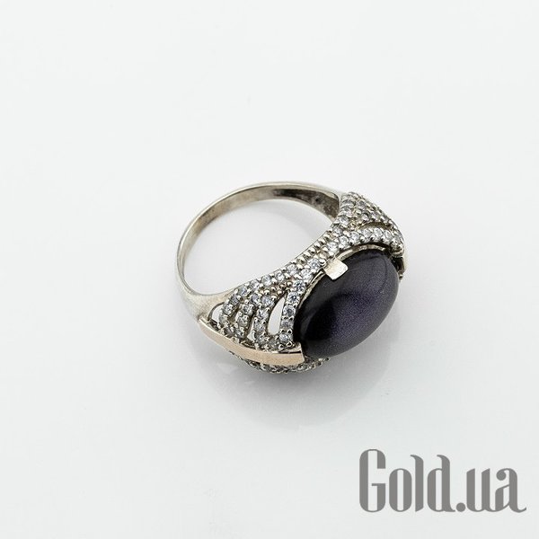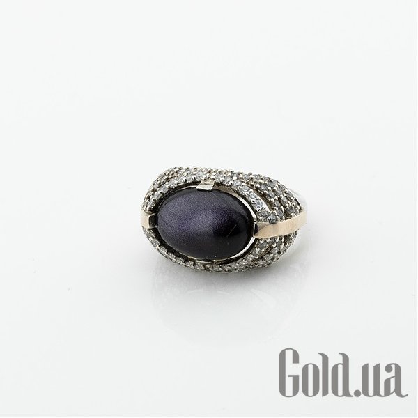 Женское серебряное кольцо с куб. циркониями и синт. авантюрином в позолоте