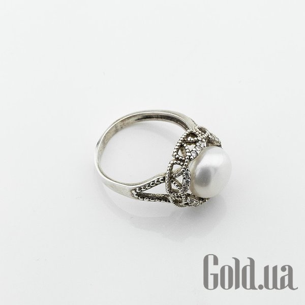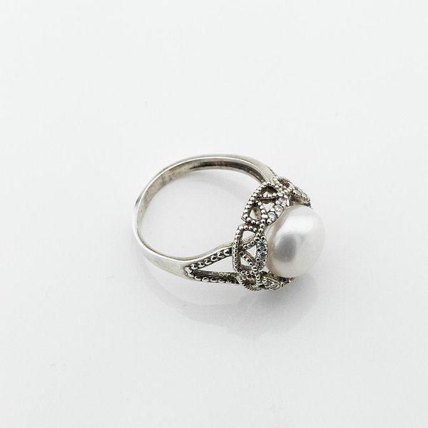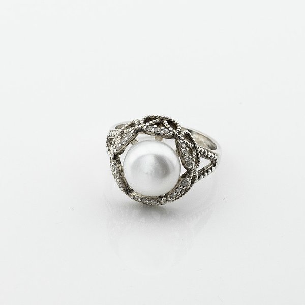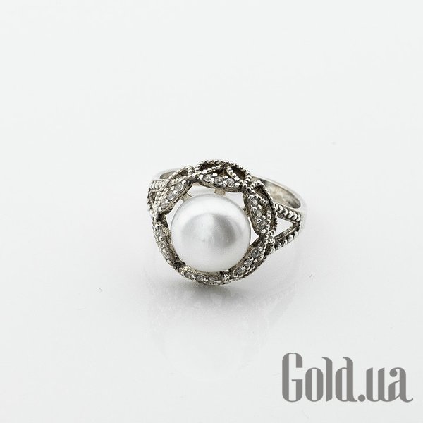 Женское серебряное кольцо с куб. циркониями и искусств. жемчугом