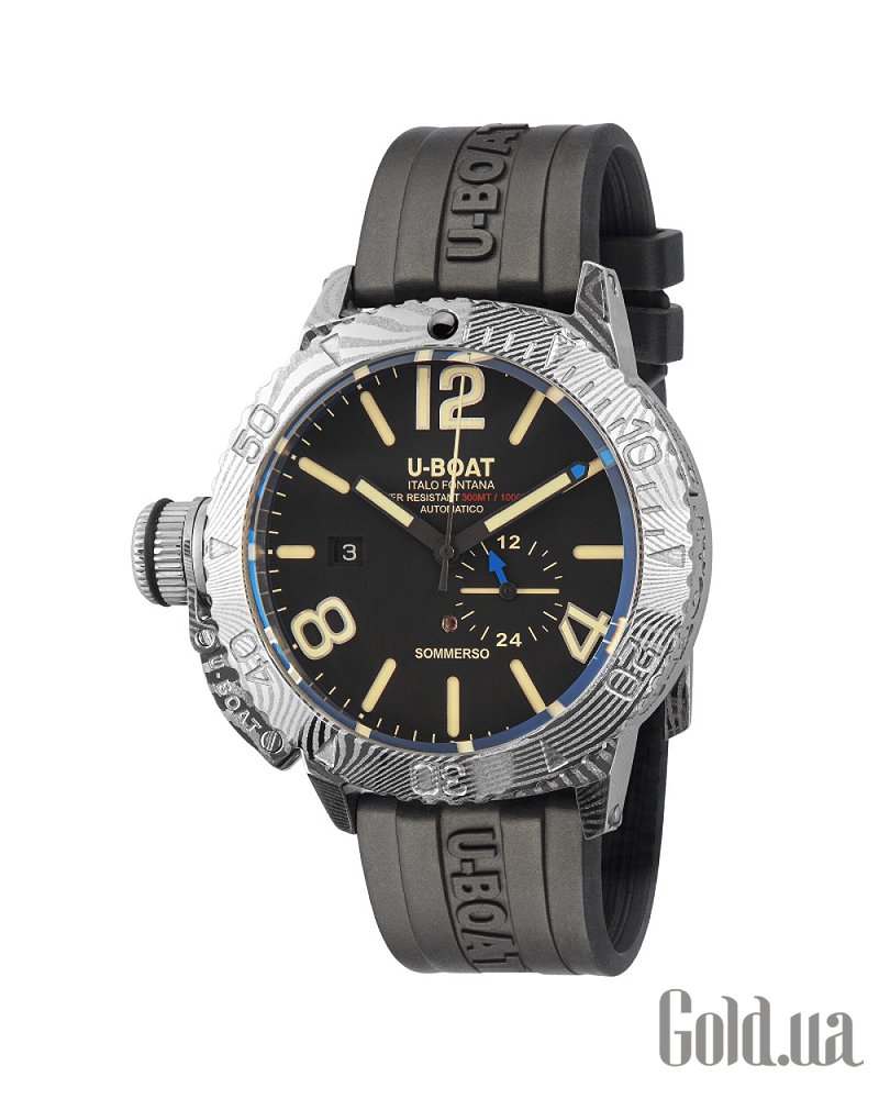 Тип браслета/ремня: Ремешок выполнен из сверхпрочного вулканизированного каучука черного цвета с тисненым логотипом U-BOAT