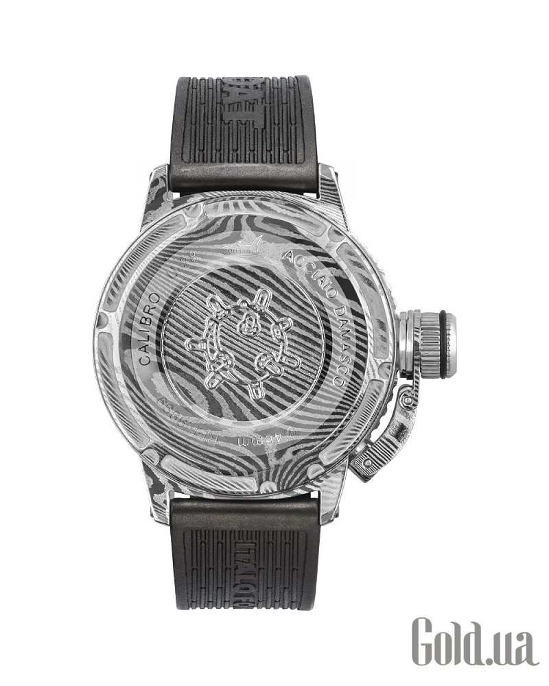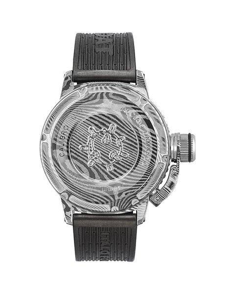 Материал корпуса часов: изготовлен из дамасской стали, положение головки подзавода на левой стороне корпуса. Большая завинчивающаяся крышка заводной головки снабжена запатентованным защитным устройством и обеспечивает максимальную водонепроницаемость. Серийный номер выгравирован на табличке, закрепленной на боковой части корпуса.