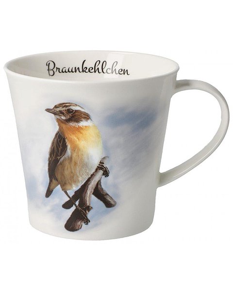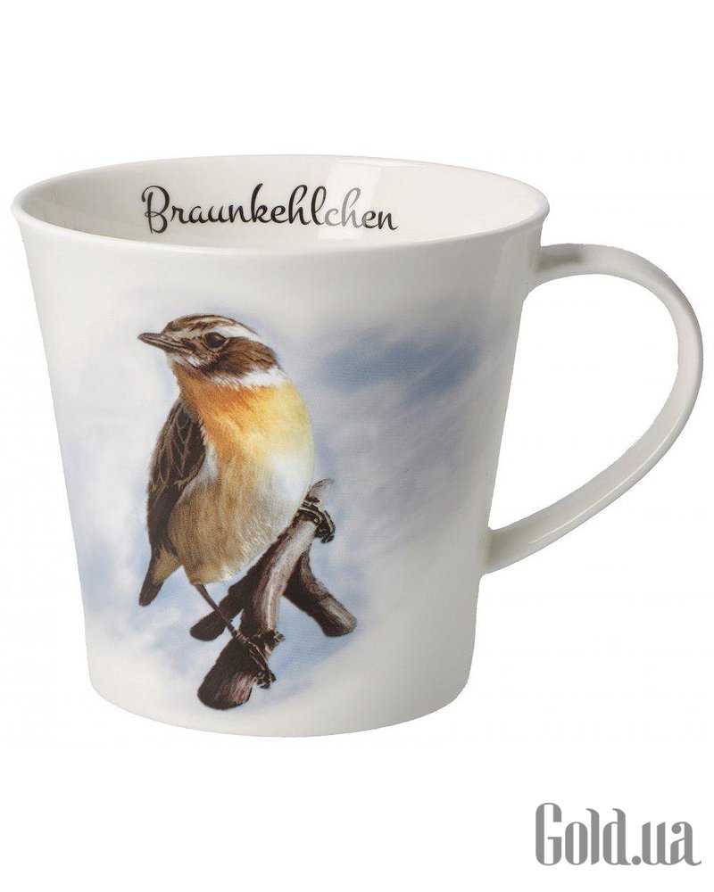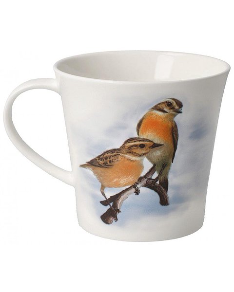 Кружка для кофе/чая «Луговой чекан» (Saxicola rubetra), Птица 2023 года. Можно мыть в посудомоечной машине, однако для сохранения ярких цветов рекомендуется ручная мойка с использованием мягкого моющего средства.
