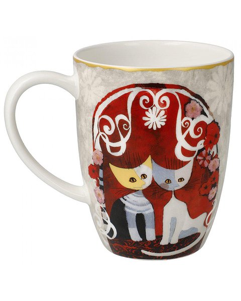 Кружка "Храмы любви" рассказывает историю о том, как две кошки оберегают самые сокровенные тайны любви. Художественное оформление выполнено с большой любовью к деталям и украшено металлической краской.