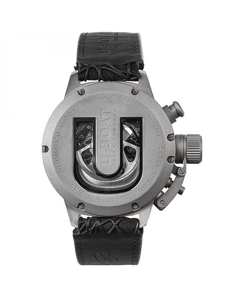 Часовой механизм: механический хронограф с автоподзаводом Sellita SW 500 персонализирован в соответствии со спецификациями U-BOAT. Окно даты и заводная головка расположены вблизи отметки «9 часов». Ротор вырезан на прецизионном лазерном станке в соответствии со спецификациями U-BOAT.