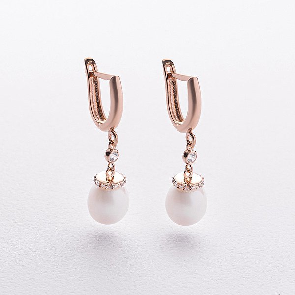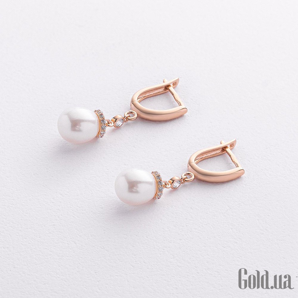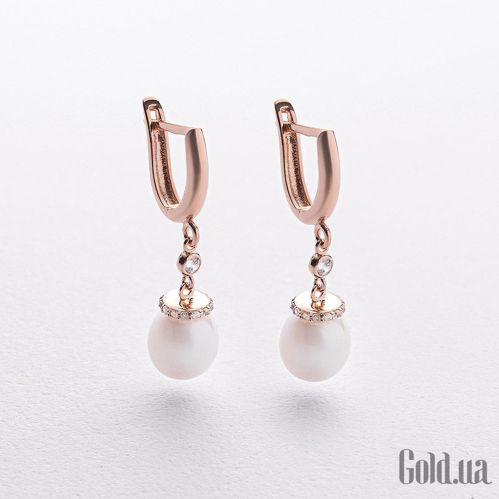 Золотые серьги с куб. циркониями и культив. жемчугом