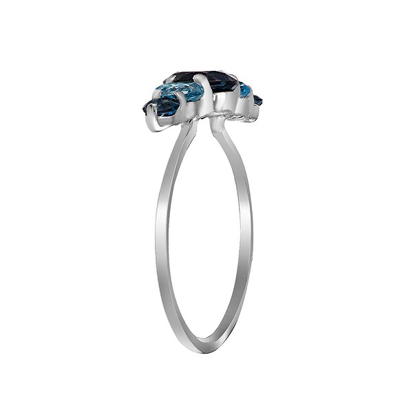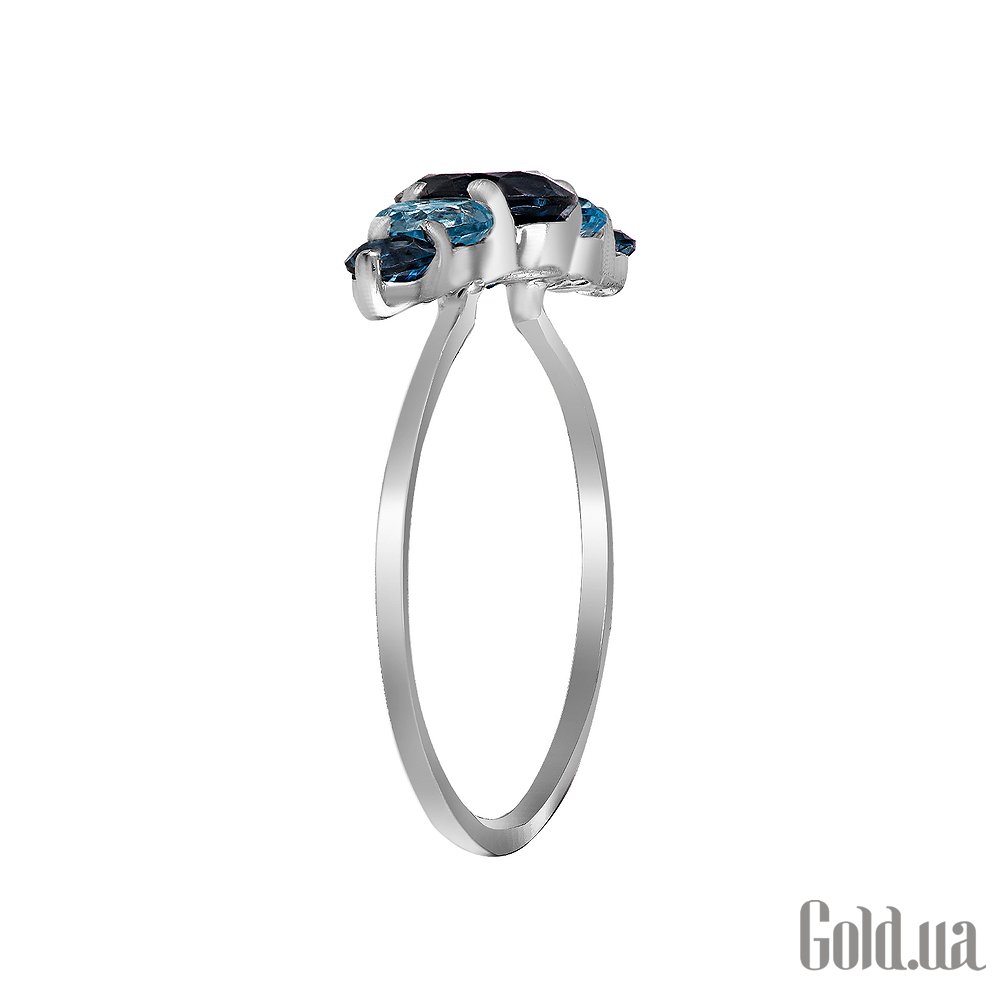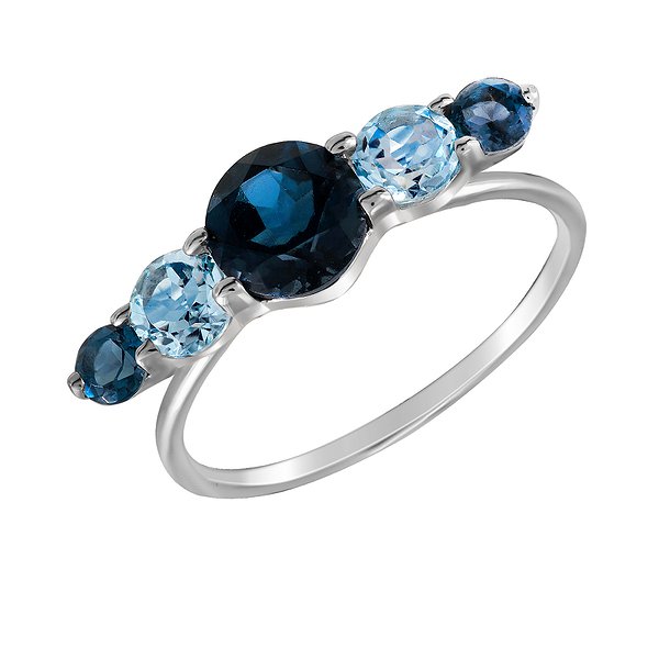 Продолговатый орнамент вершины золотого кольца напоминает рисунок, которым разукрашивали древние рукописные книги. Холодная гамма синих красок разными оттенками расцвечивает украшение. На серебристо-белом тонком овале переливаются разнородные топазы. В центре светится темно-лазурный кристалл. Далее, нежно-голубой минерал переливается небесной чистотой. И завершают композицию темные небольшие камешки, мерцающие ультрамарином.