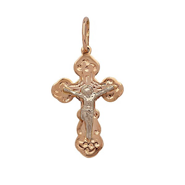 Кулон-крестик из белого и красного золота имеет красивую гравировку, которая понравится и женщинам, и мужчинам. При высоте 27 мм и ширине 14 мм носится украшение очень удобно. Прочное ушко достаточно больших размеров позволит носить кулон практически на любой цепочке. Яркая драгоценность будет отлично смотреться с одеждой любого стиля.