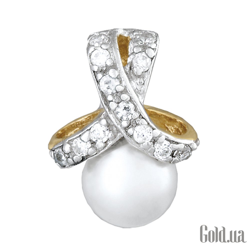 Серебряный кулон с жемчугом и куб. циркониями в позолоте