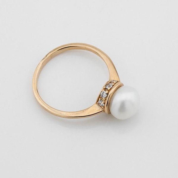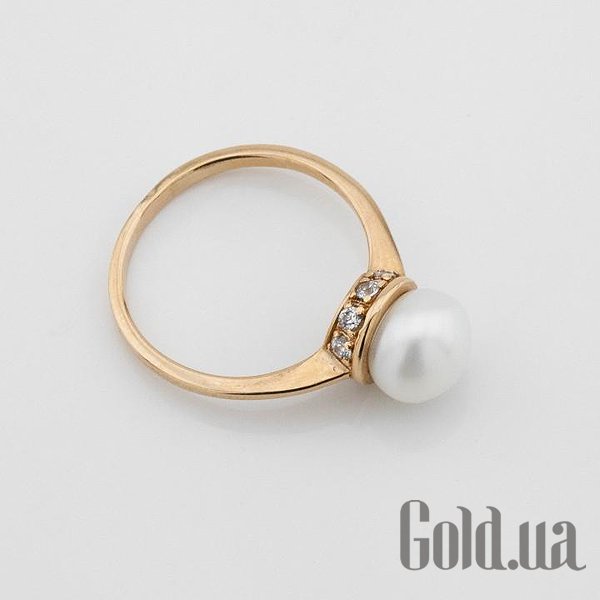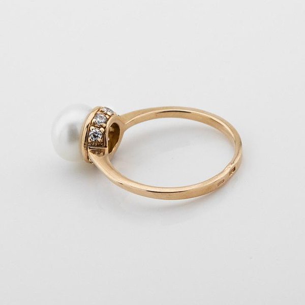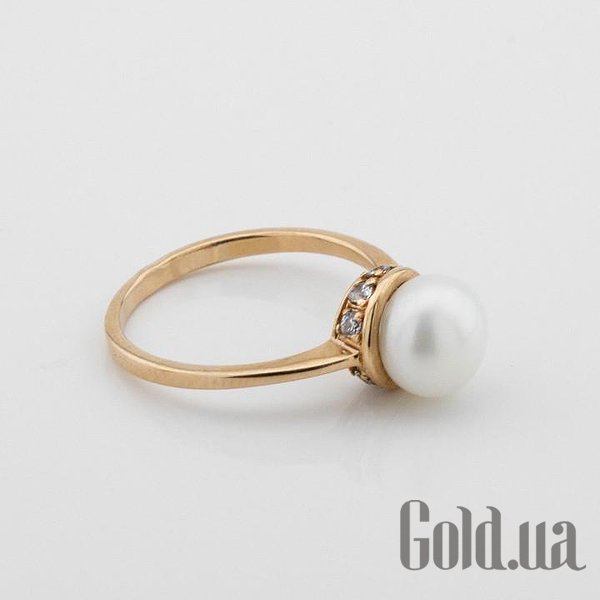 Женское золотое кольцо с жемчугом и куб. циркониями