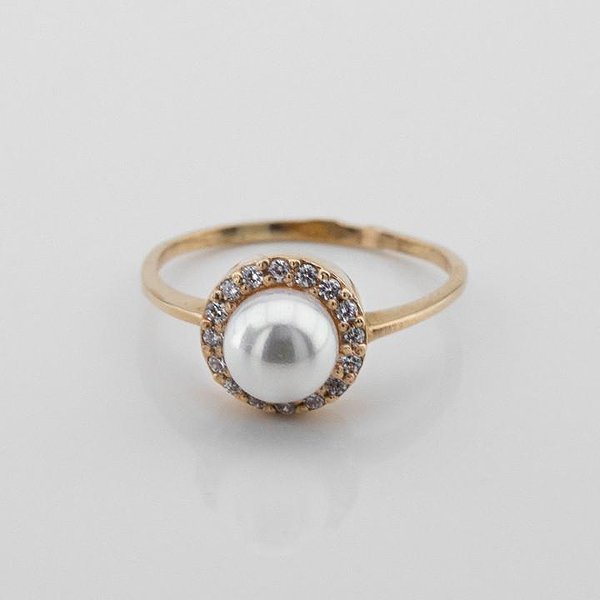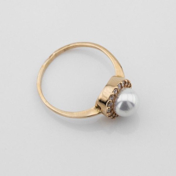 Женское золотое кольцо с жемчугом и куб. циркониями