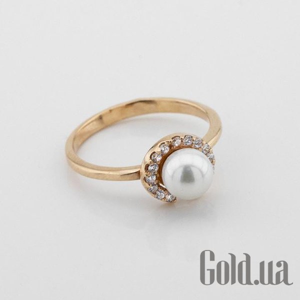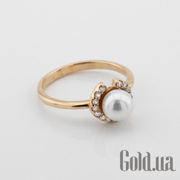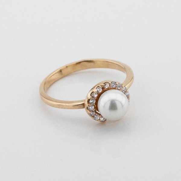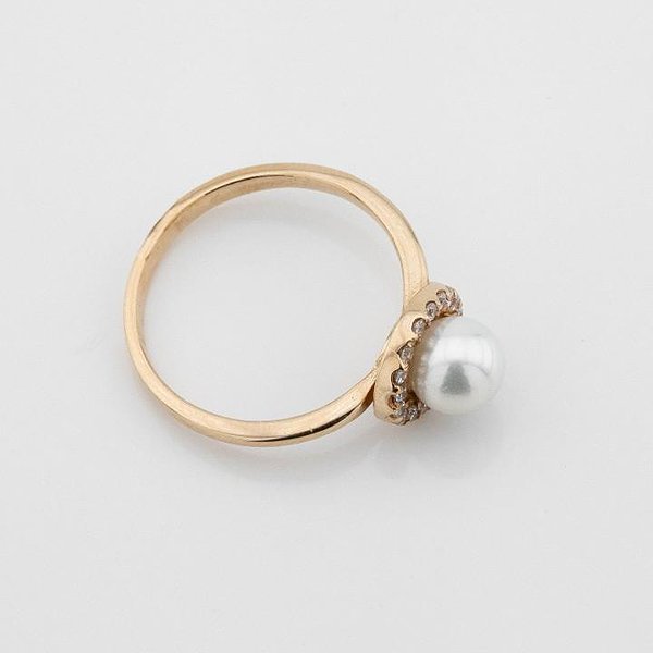 Женское золотое кольцо с жемчугом и куб. циркониями