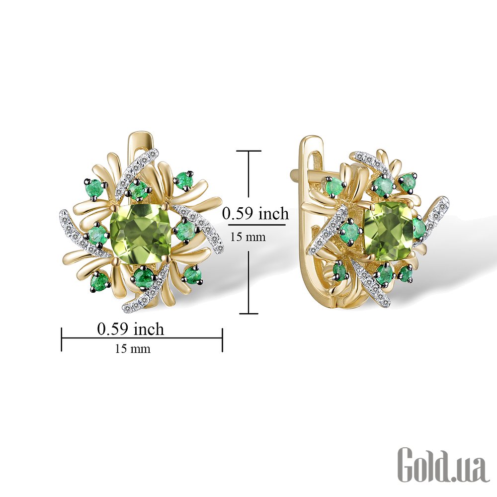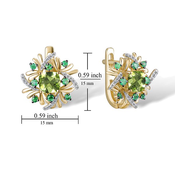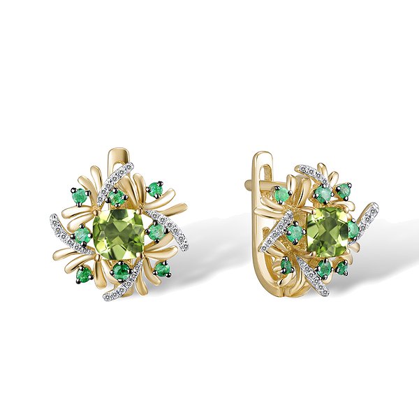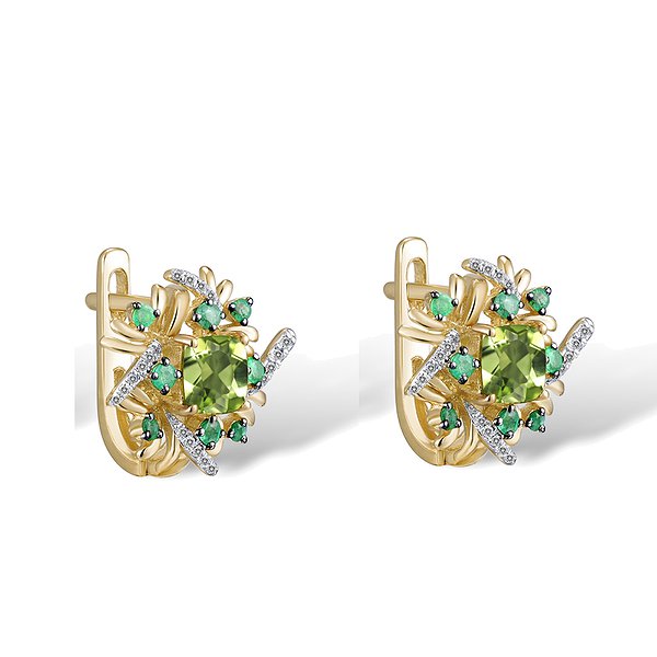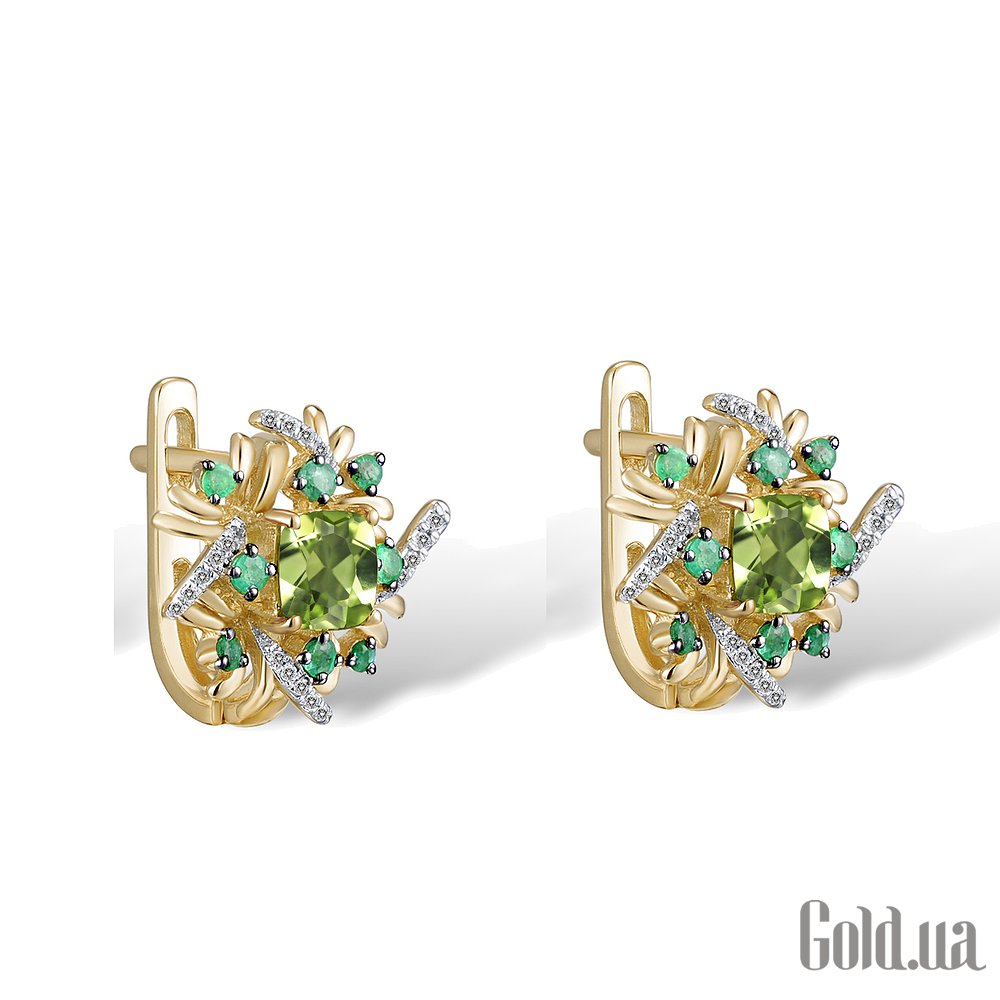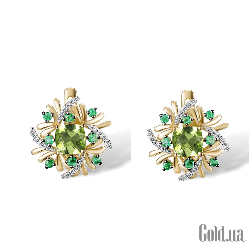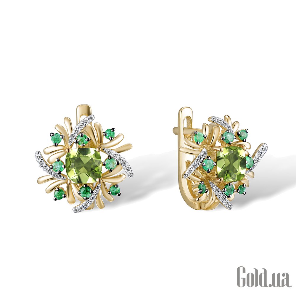 Золоті сережки з діамантами, смарагдами та перидотом