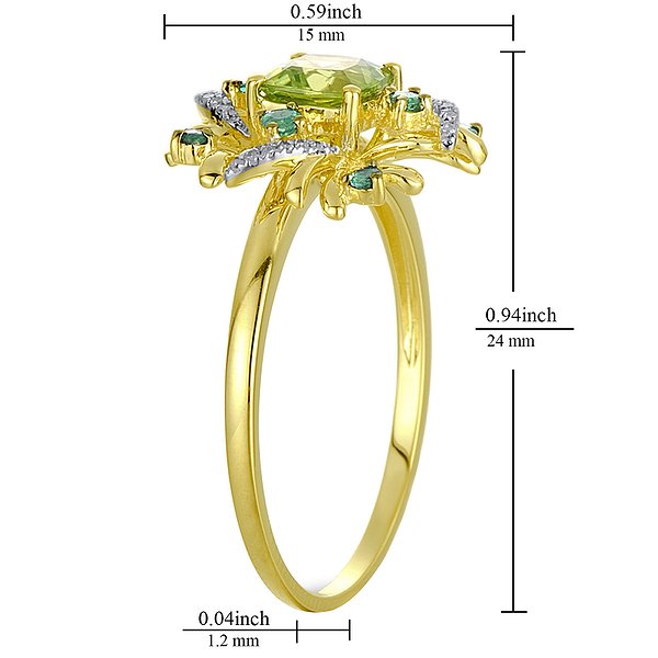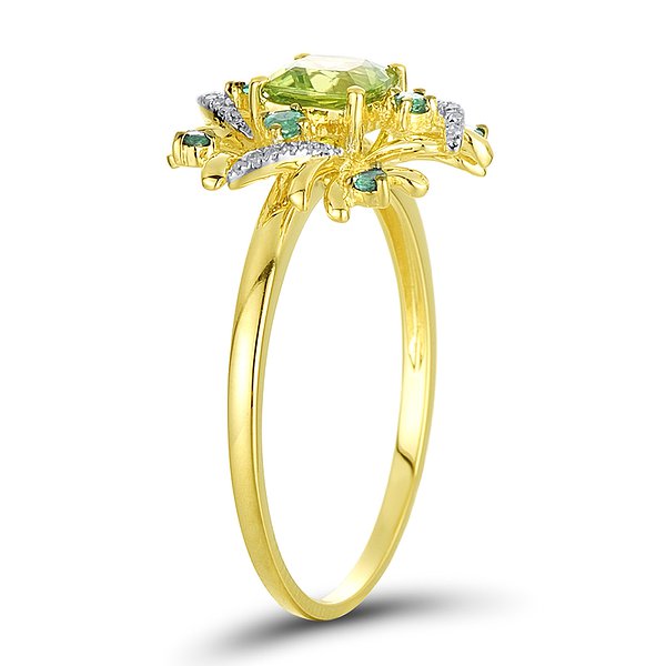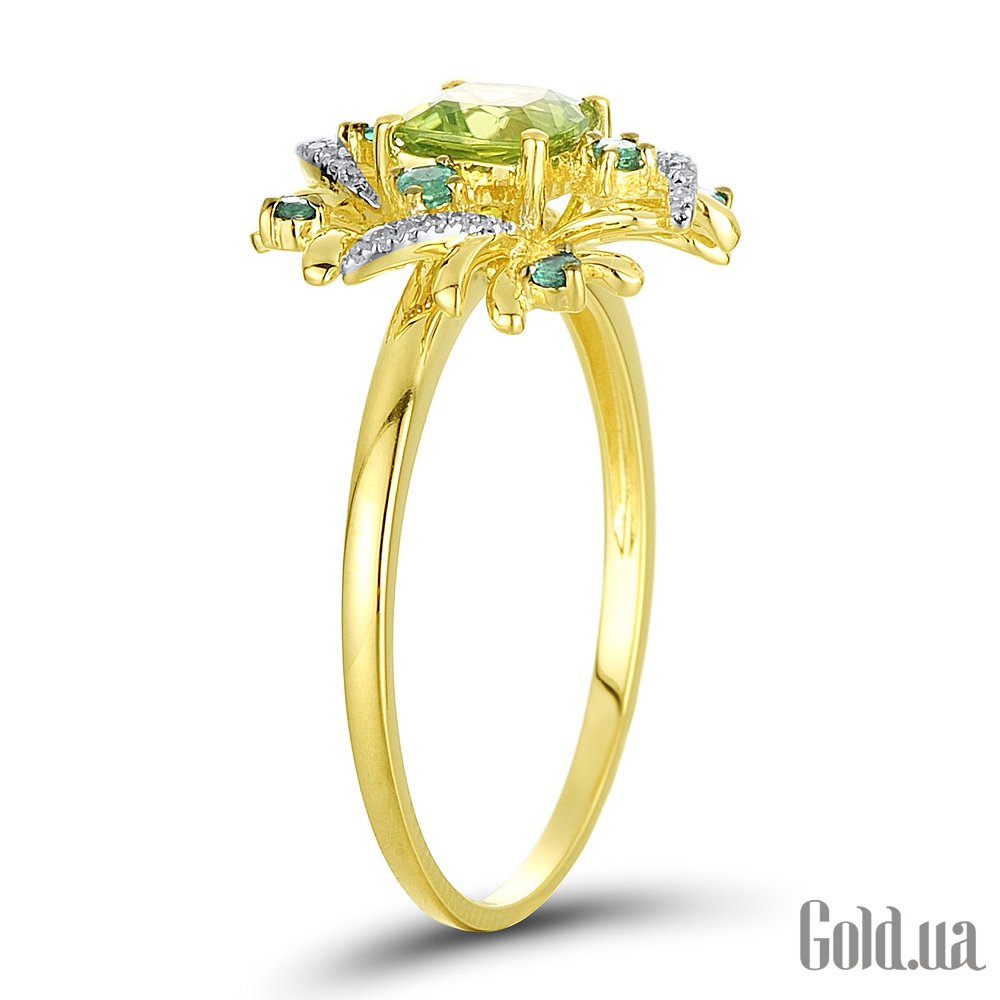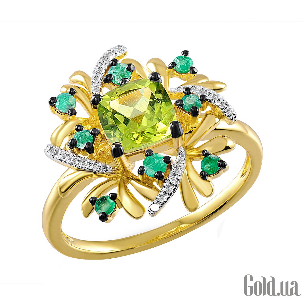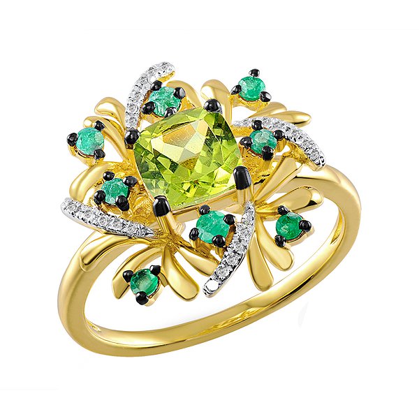 Жіноча золота каблучка з діамантами, смарагдом і перидотом