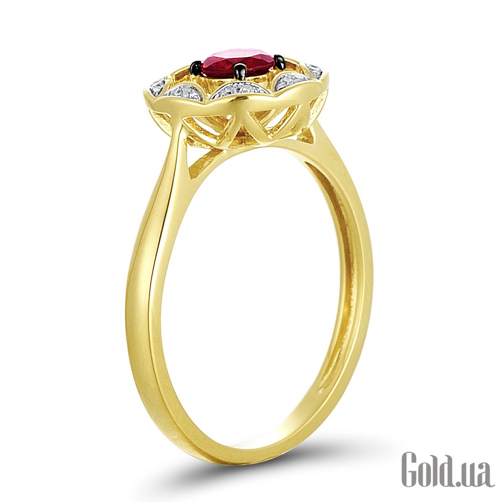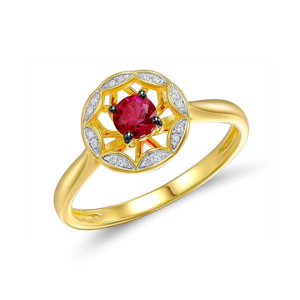 Золоте кільце нагадує райдужний калейдоскоп, в якому присутня теплота фарб і чіткий повторюється орнамент. Ажурний диск з тонких смужок золота тілесного кольору, як мережа, зібрав по краях напівовалом з сніжно-білих діамантів. У центрі горить червоним полум'ям круглий гранат, прикрашений чорними закрепами. Тонкі блискучі кантики підкреслюють геометричну чіткість малюнка, викликаючи непідробний захват. Чарівні сережки-гвоздики доповнять модний аксесуар.