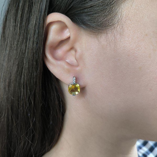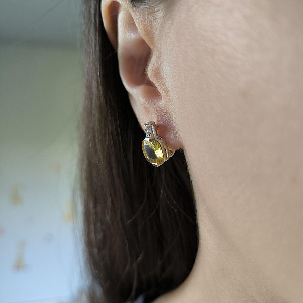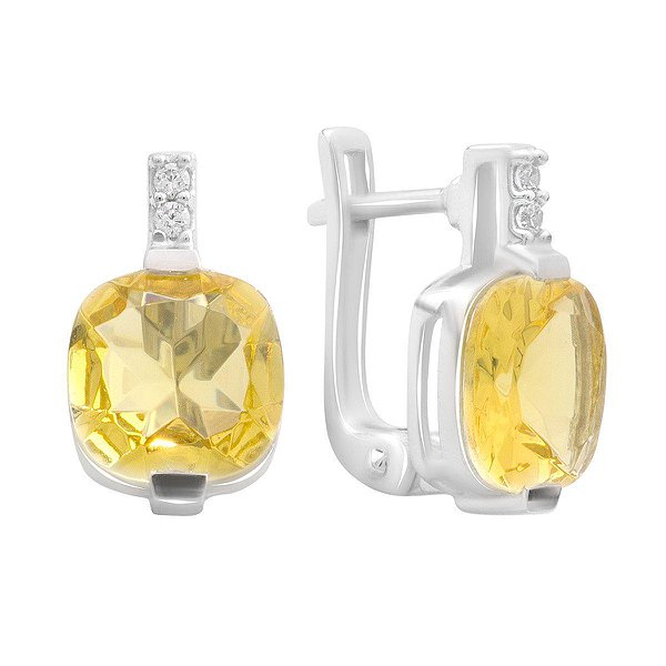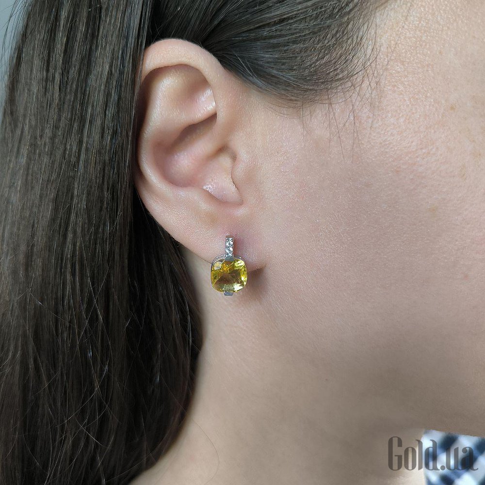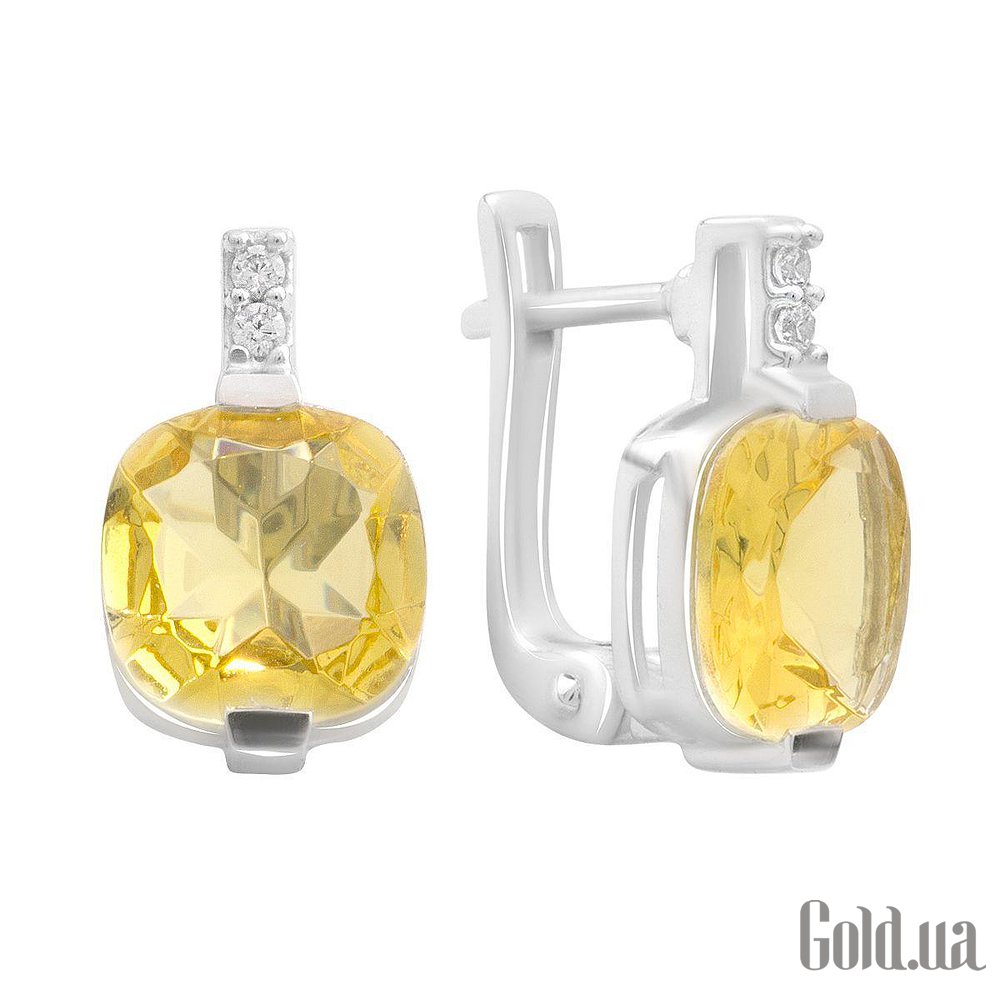 Срібні сережки з куб. цирконіями та синт. цитринами