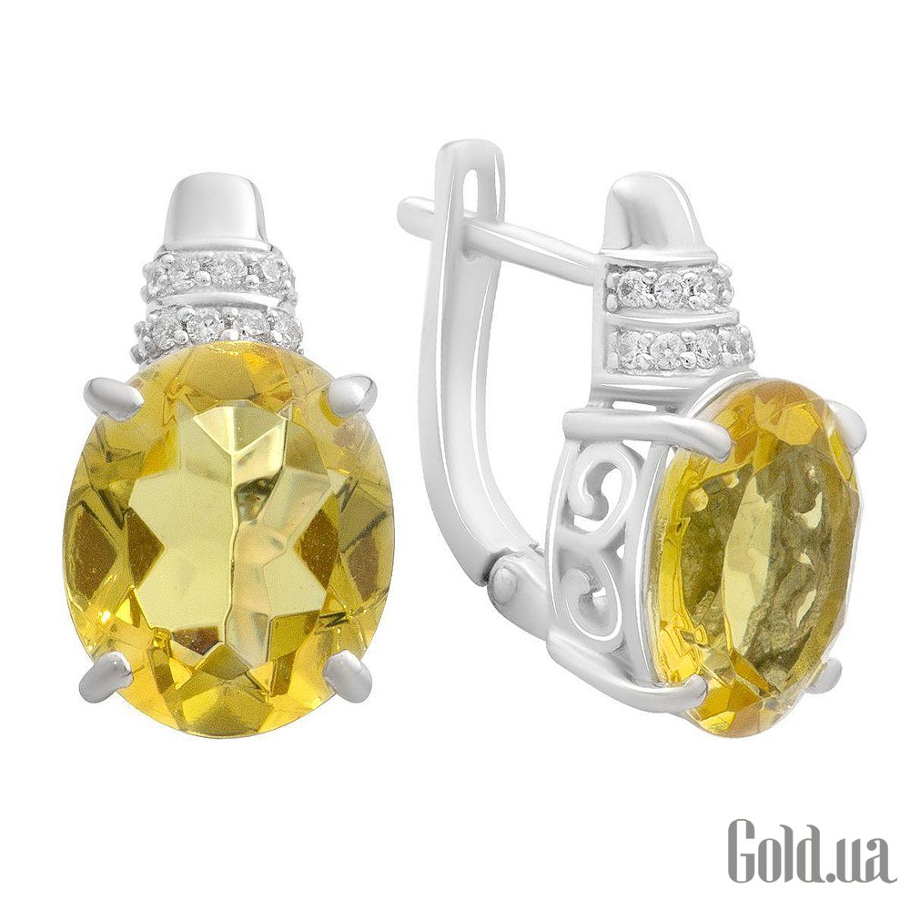 Срібні сережки з куб. цирконіями та синт. цитринами