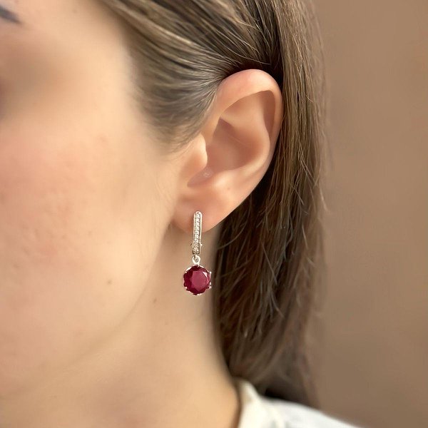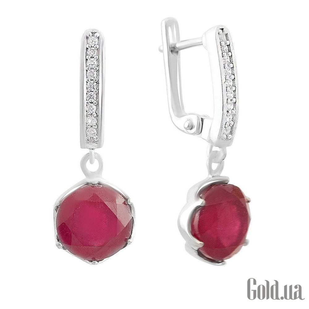 Срібні сережки з куб. цирконіями та рубінами