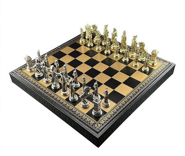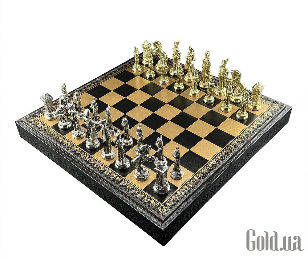 Дошка виготовлена з екошкіри. Розмір дошки: 48 x 48 x 5,5 cm, розмір квадрата: 5,2 cm. Фігурки колекції "Napaleone" виготовлені із цинку, латуні, нікелю. Розмір короля: 10 cm – Ø base 3,2 cm. У комплекті йдуть шашки, нарди.