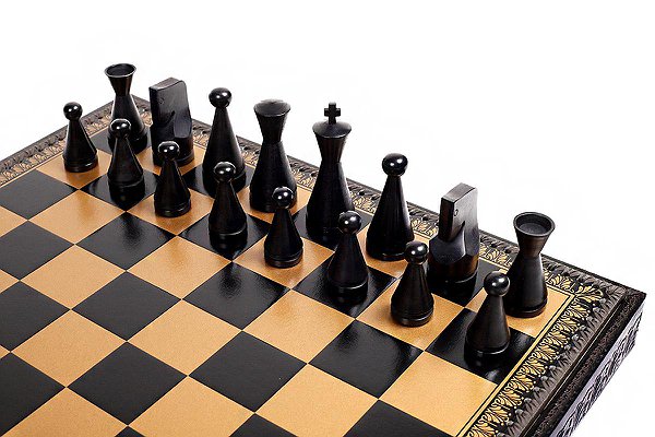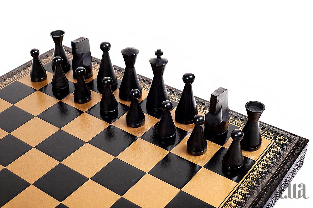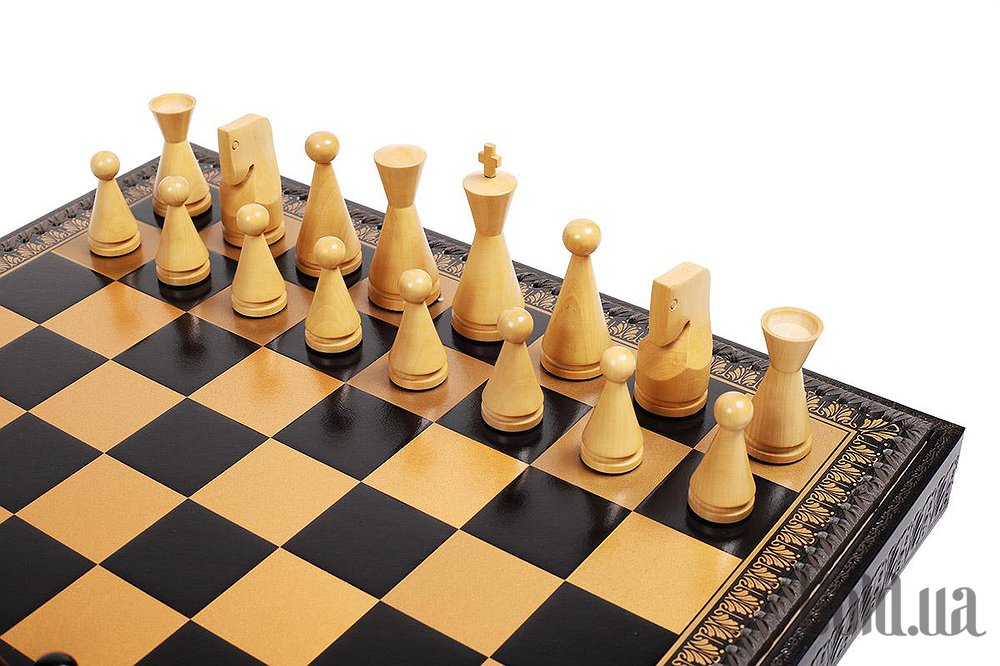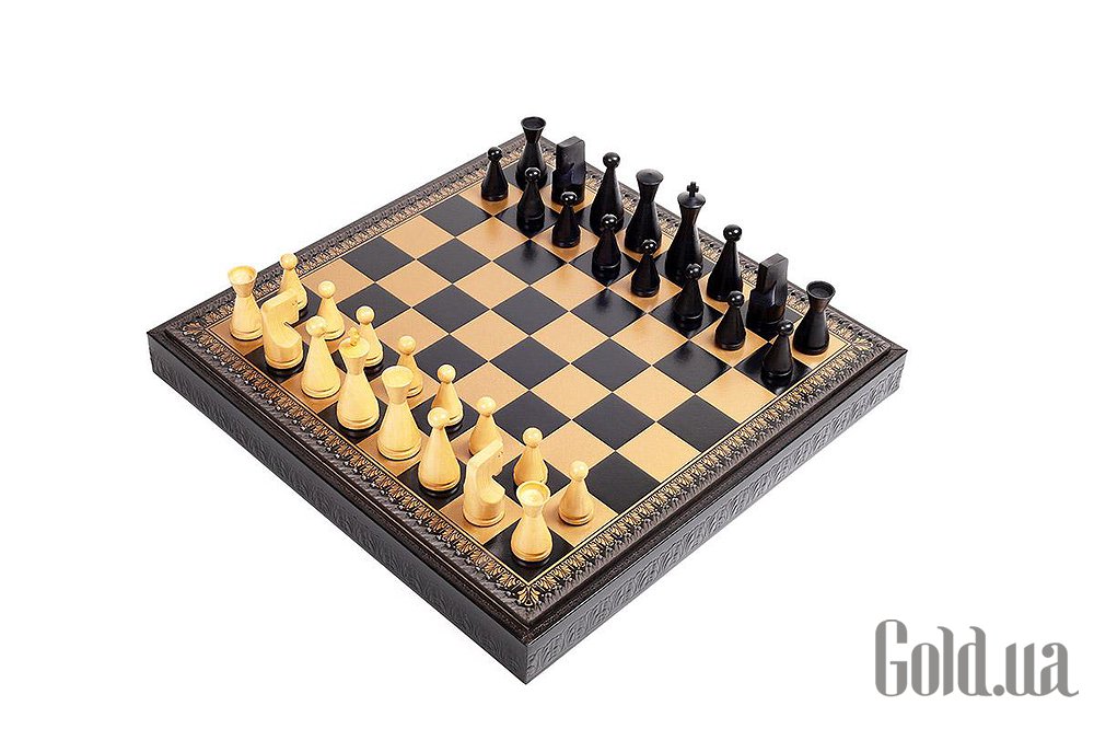 Дошка виготовлена з екошкіри. Розмір дошки: 48 x 48 x 5,5 cm, розмір квадрата: 5,2 cm. Фігурки колекції Modern виготовлені з дерева (Акація). Розмір короля: 9,5 cm – Ø base 3,5 cm. У комплекті йдуть шахи, шашки, нарди.