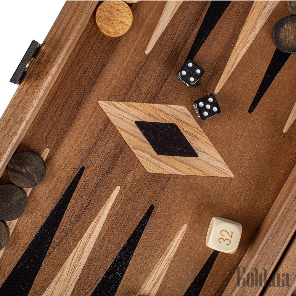 У набір входить: дошка, шахи, 30 шашок, 4 кубики, 1 куб подвоєння, 1 комплект дерев'яних чаш для гри в кістки.