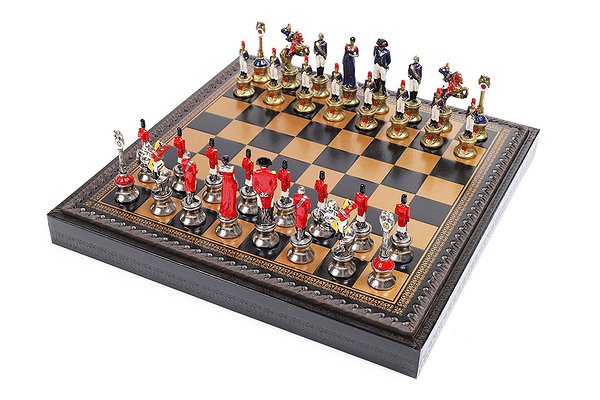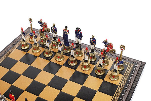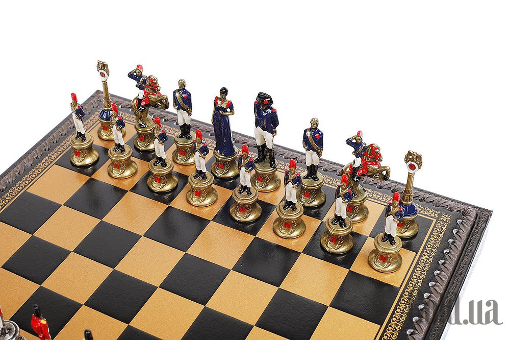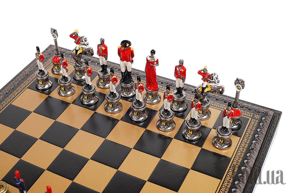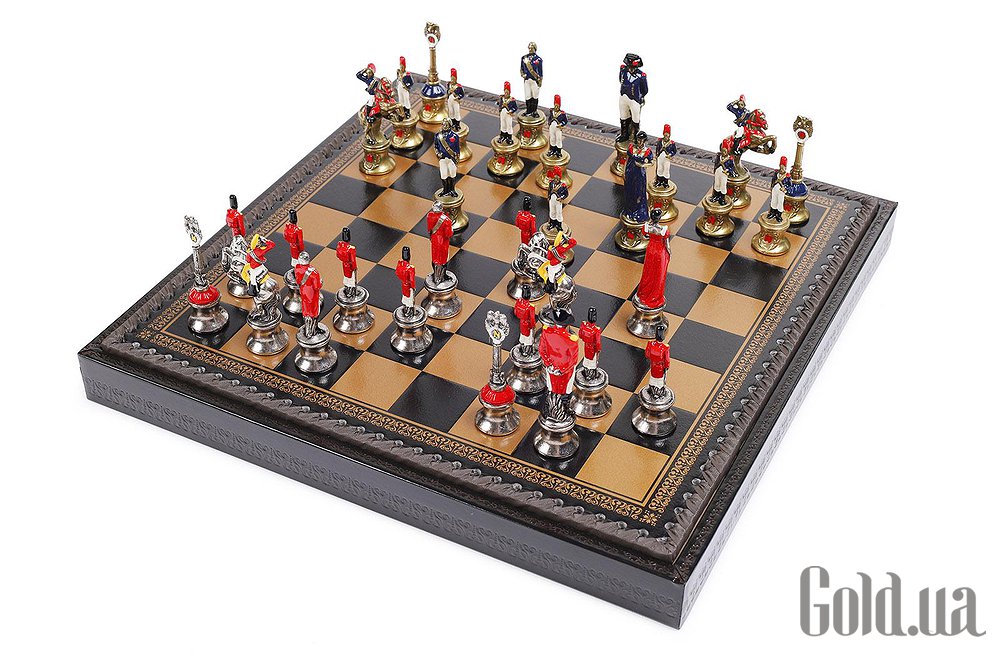 Дошка виготовлена з екошкіри. Розмір дошки: 35 x 35 x 4 cm, розмір квадрата: 3,5 cm. Фігурки колекції "Napaleone" виготовлені із цинку, латуні, нікелю. Розмір короля: 8,2 cm – Ø base 2,3 cm. У комплекті йдуть шашки, нарди.
