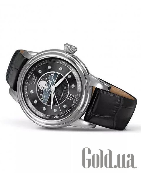 Циферблат: Чорний з малюнком у вигляді сонячних променів, перламутровими хмарами та діамантовими мітками (10 діамантів, VS2/F, 0.058 ct), сертифікат на справжні натуральні діаманти в комплекті