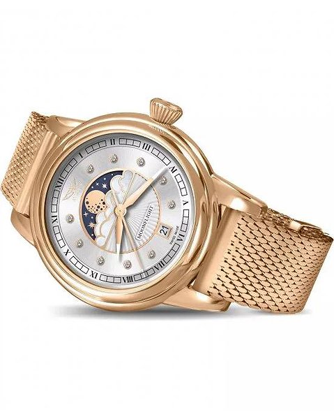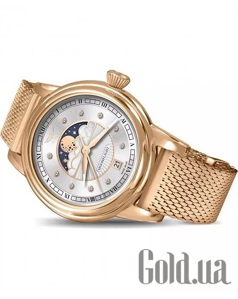 Серцем цього годинника став надійний механізм швейцарського виробництва із запасом ходу до 54 місяців. До ньому доданий індикатор фаз Місяця, що виділяється за рахунок витонченої обробки, металізації та полірування.