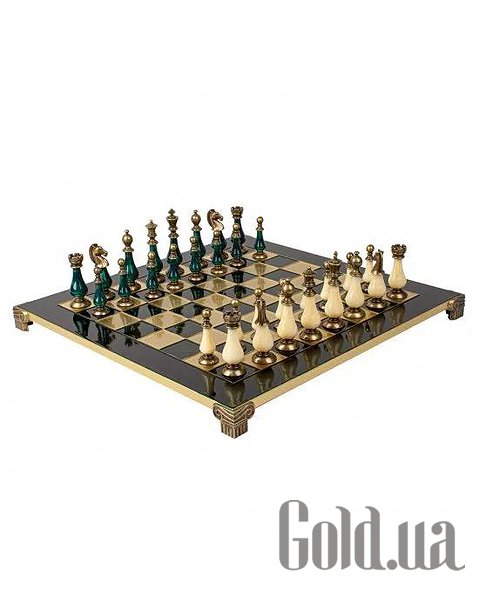 Комплектація: 32 шахові фігури з цинкового сплаву, шахівниця латунна, висота короля 10 см