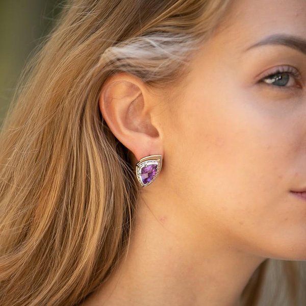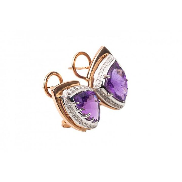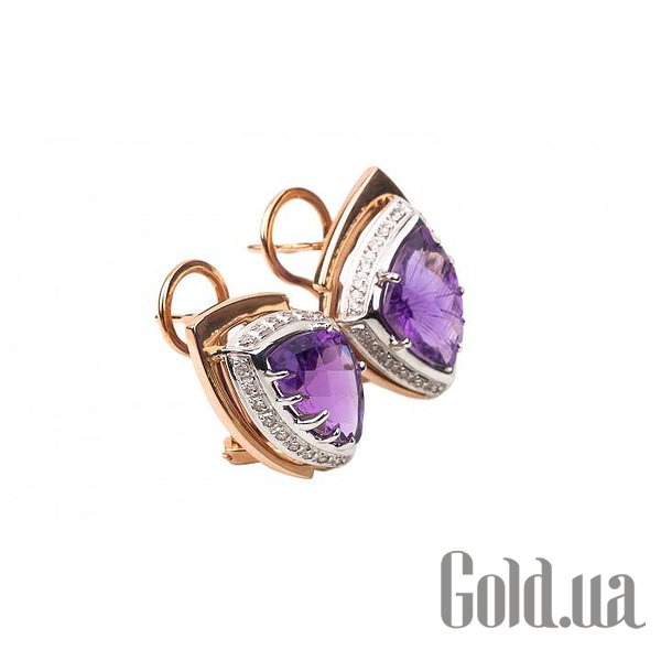 Золоті сережки з діамантами та аметистами
