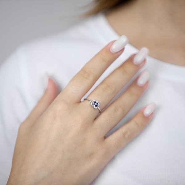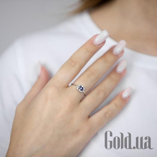 Жіноча золота каблучка з діамантами та сапфіром