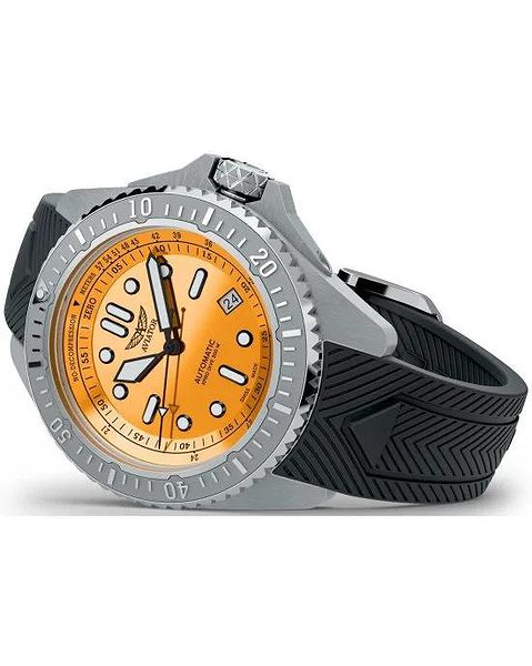 Циферблат: Помаранчевий Емалевий циферблат, накладні металеві індекси з люмінесцентним покриттям SuperLuminova.