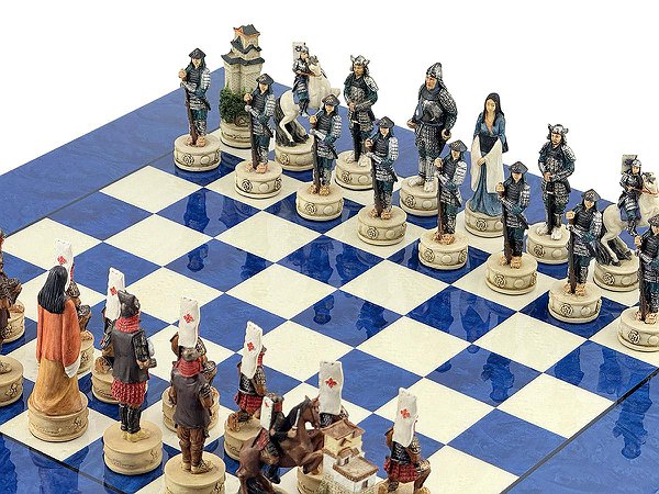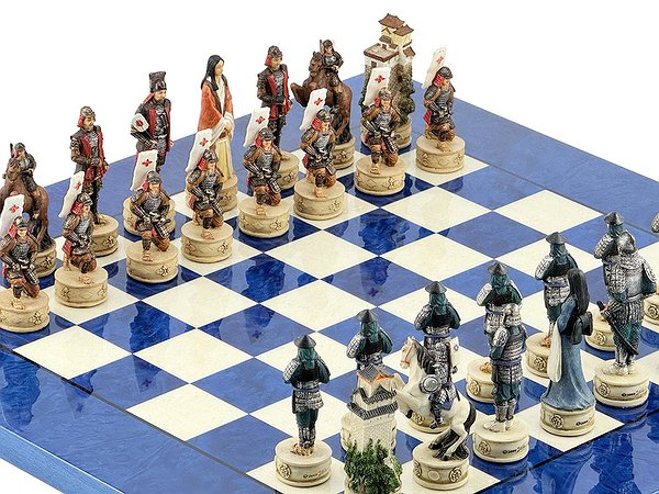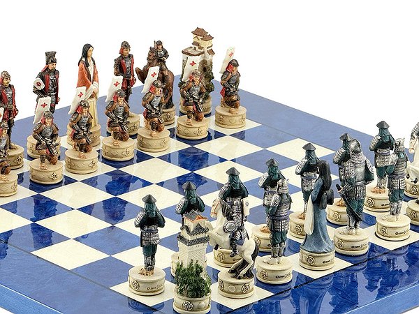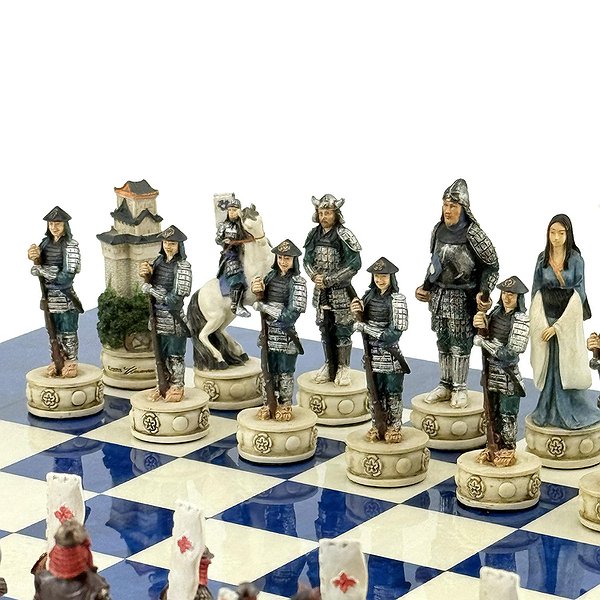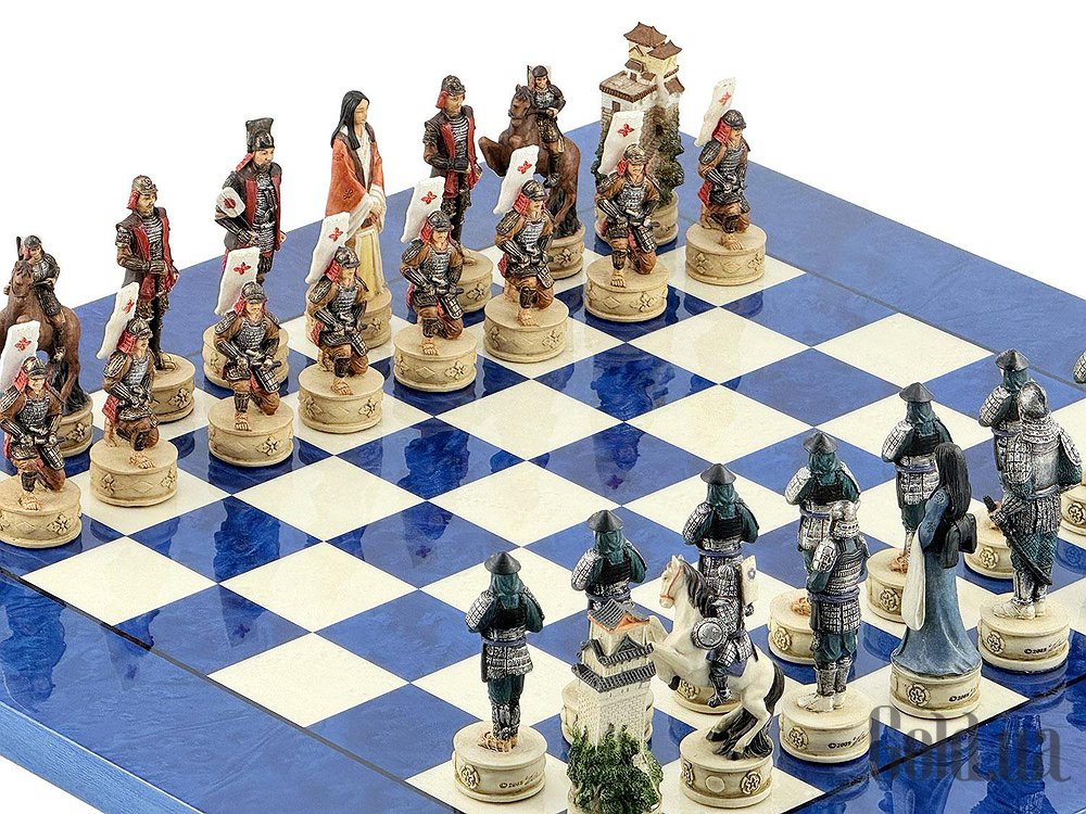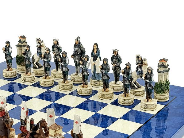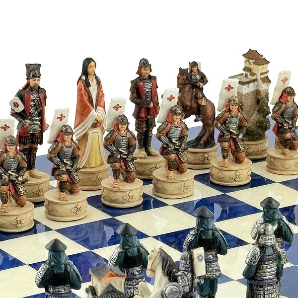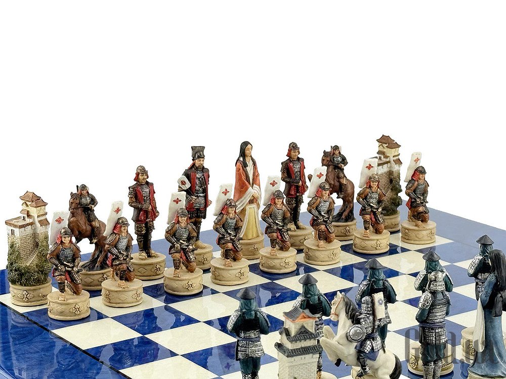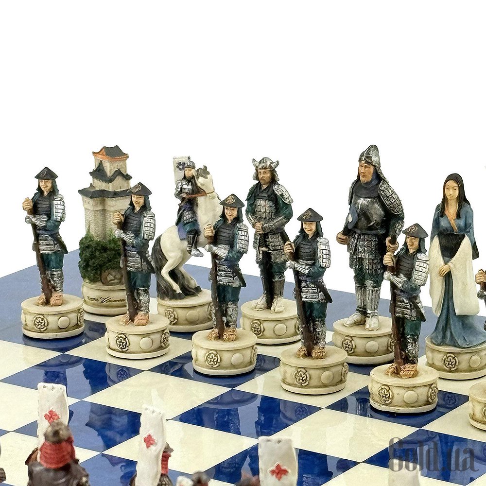 Ці шахові фігури середньовічні самураї, виготовлені вручну з полістоуну, розписані в найдрібніших деталях італійськими майстрами.