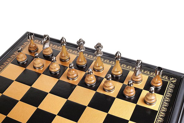Шаховий стіл виготовлений із дерева.