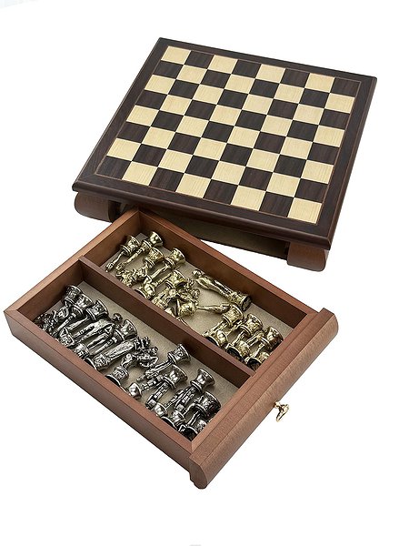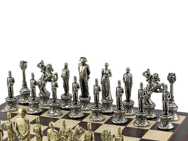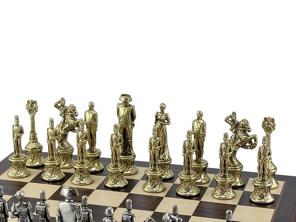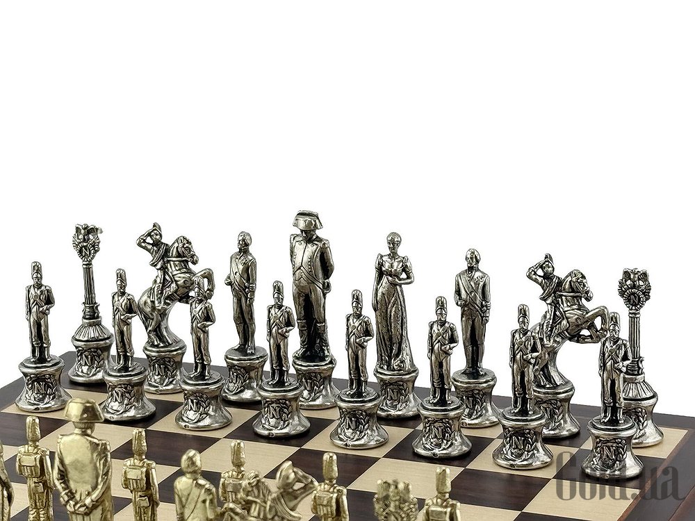 Шахова дошка всесвітньо відомого італійського бренду Italfama. Виготовлена із дерева. Розмір дошки: 32 x 32 x 6 cm, розмір квадрата: 3,5 cm. Фігурки колекції Napaleone виготовлені із цинку, латуні, нікелю. Розмір короля: 8,2 cm – Ø base 2,3 cm. Основа фігурок з фетровою накладкою та логотипом Italfama.